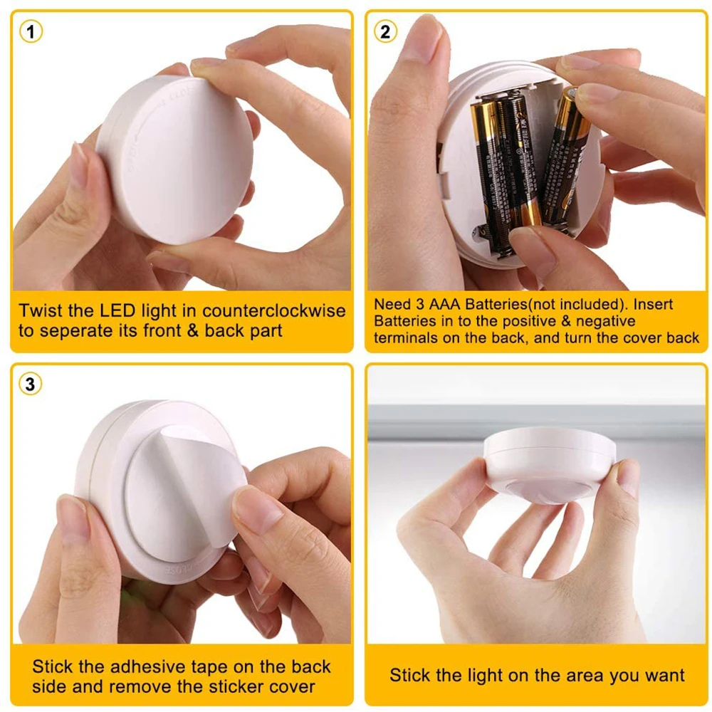 * Легко установить и снять-беспроводной дизайн, легко наклеить. Каждая светодиодный светильник для шкафа питается от 3 батареек типа ААА (рекомендуется использовать перезаряжаемые батареи в комплект не входят), быстро устанавливается с помощью оригинальной липкой ленты. Подходит для прихожей, кухни, чулана, спальни, шкафа, книжного шкафа, кладовой, лестницы, ступени, подсобного помещения, подвала и т. д. а также может использоваться в качестве яркой атмосферной лампы.