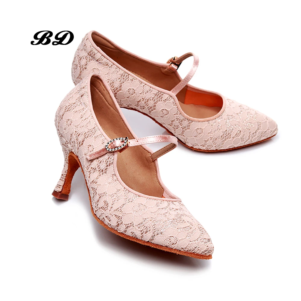 Женские кроссовки для танцев BD, Современная обувь для бальных танцев из натуральной кожи со шнуровкой и атласом, 137