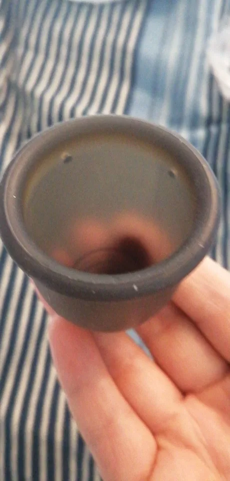 Напрягает специфический запах химический, немного остался и после кипячения. Форма и жёсткость идеальные, по сравнению с другими чашами. Но у меня все равно произошла протечка, причём через час, не могу понять почему, такое ощущение, что она чуток меньше, чем надо. Хотя вроде такая же по размеру, как две моих предыдущих. В общем вставлять идеально, плюс ещё и 4 дырки, не надо самой протыкать, и дырки большие, по сравнению с прошлой чашей. Но что-то все равно не так с ней. Проверила зажигалкой, не плавится, значит вроде как медицинский силикон должен быть. Но что она так воняет то? В общем спорные ощущения.