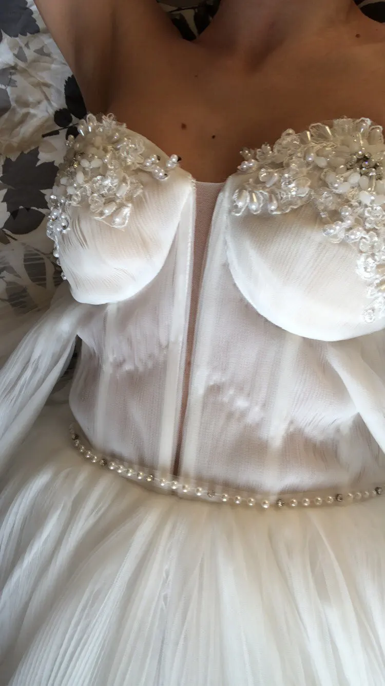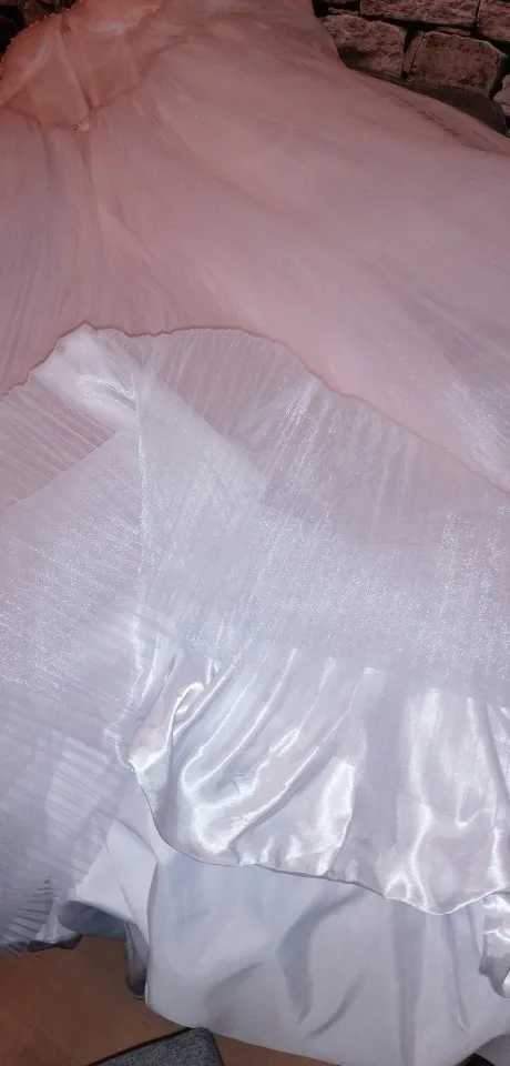 The dress is extremely beautiful and exactly as advertised. I requested a puffer skirt and it was done at a small extra cost. I look like a princess in it. I lost some weight so the dress does not sit perfectly but it will again soon. The seller is very helpful, kind and did her best to answer all my questions. The dress is beautiful and I am I can't wait to walk it down the isle Also it was a very quick process to get the dress made and to the Netherlands so I'm super impressed