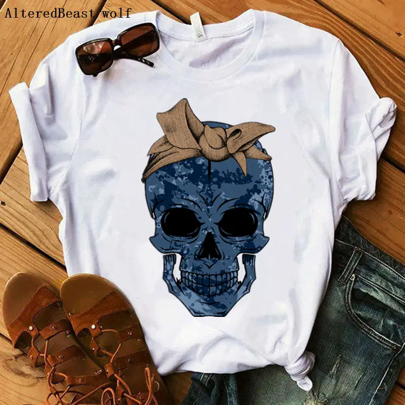 Летняя камуфляжная футболка с черепом, Женская Бандана с леопардовым принтом в стиле Харадзюку, футболка для мам, забавная футболка с коротким рукавом, женская одежда