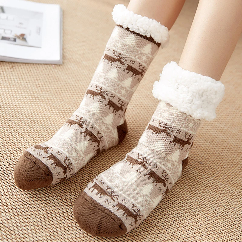 Домашние тапочки, женские модные рождественские носки до середины икры, тапочки для девочек с силикагелевой основой, домашние тапочки, женская зимняя домашняя обувь