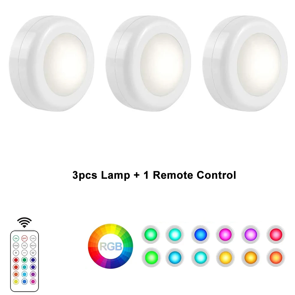 Беспроводной Цвет меняющийся Светодиодный точечный светильник 1/3/6/12 пакет с пультом дистанционного управления светодиодный под кабинет Светильник ing шкаф светильник Батарея приведенный в действие светильник s под прилавком светильник ing прочно держаться на поверхности светодиодный ночной Светильник s