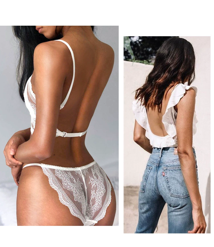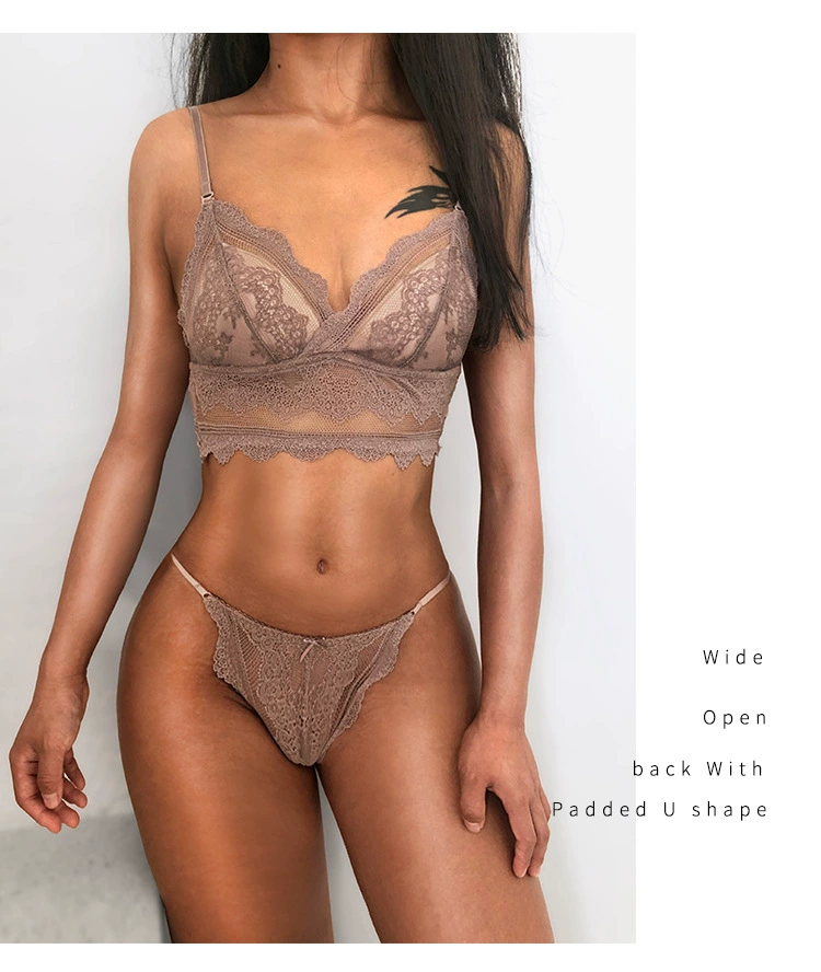 Сексуальное Кружевное перспективное нижнее белье для женщин с открытой спиной, пуш-ап бюстгальтер и трусики, 2 шт., короткие комплекты, комфортное беспроводное нижнее белье, комплект lenceria