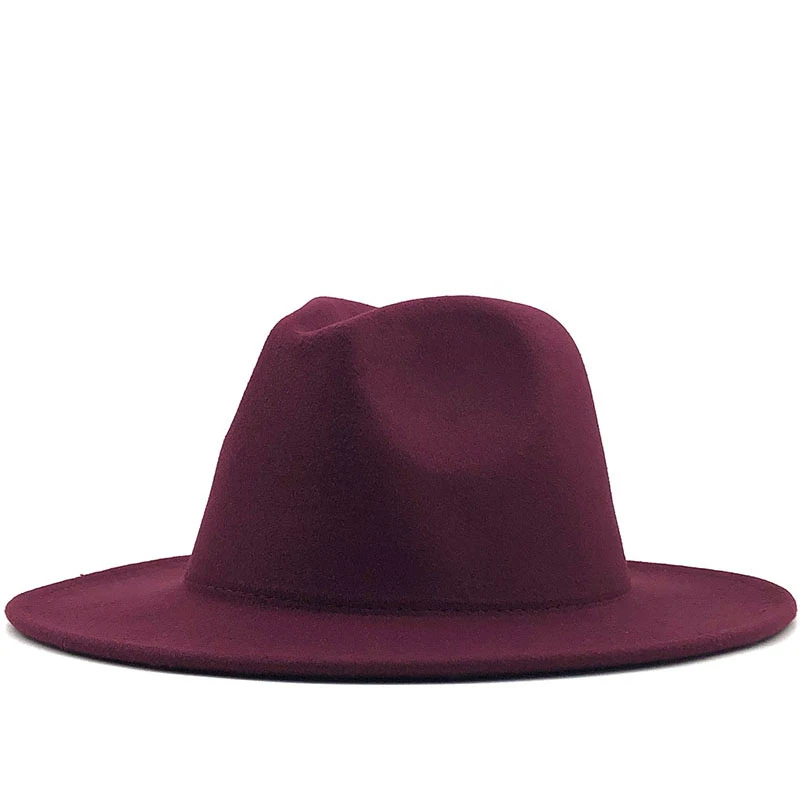 Шляпа фетровая винно-красная с подкладкой, фетровая шляпа из шерсти, с тонкой пряжкой, с широкими полями, для мужчин и женщин, X XL
