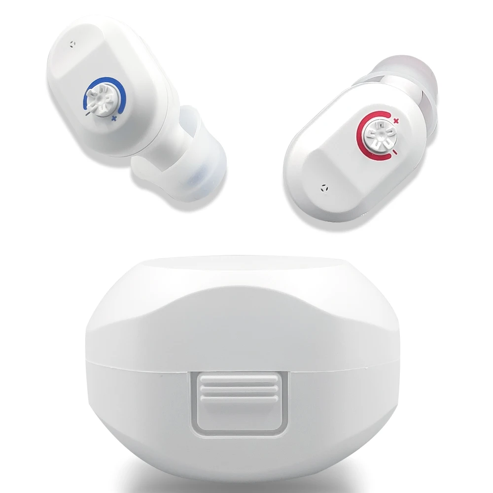 Цифровой слуховой аппарат белого цвета, перезаряжаемый слуховой аппарат с зарядным чехлом, слуховое устройство, усилитель слуха для пожилых людей