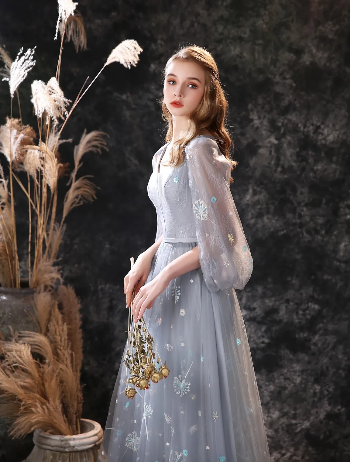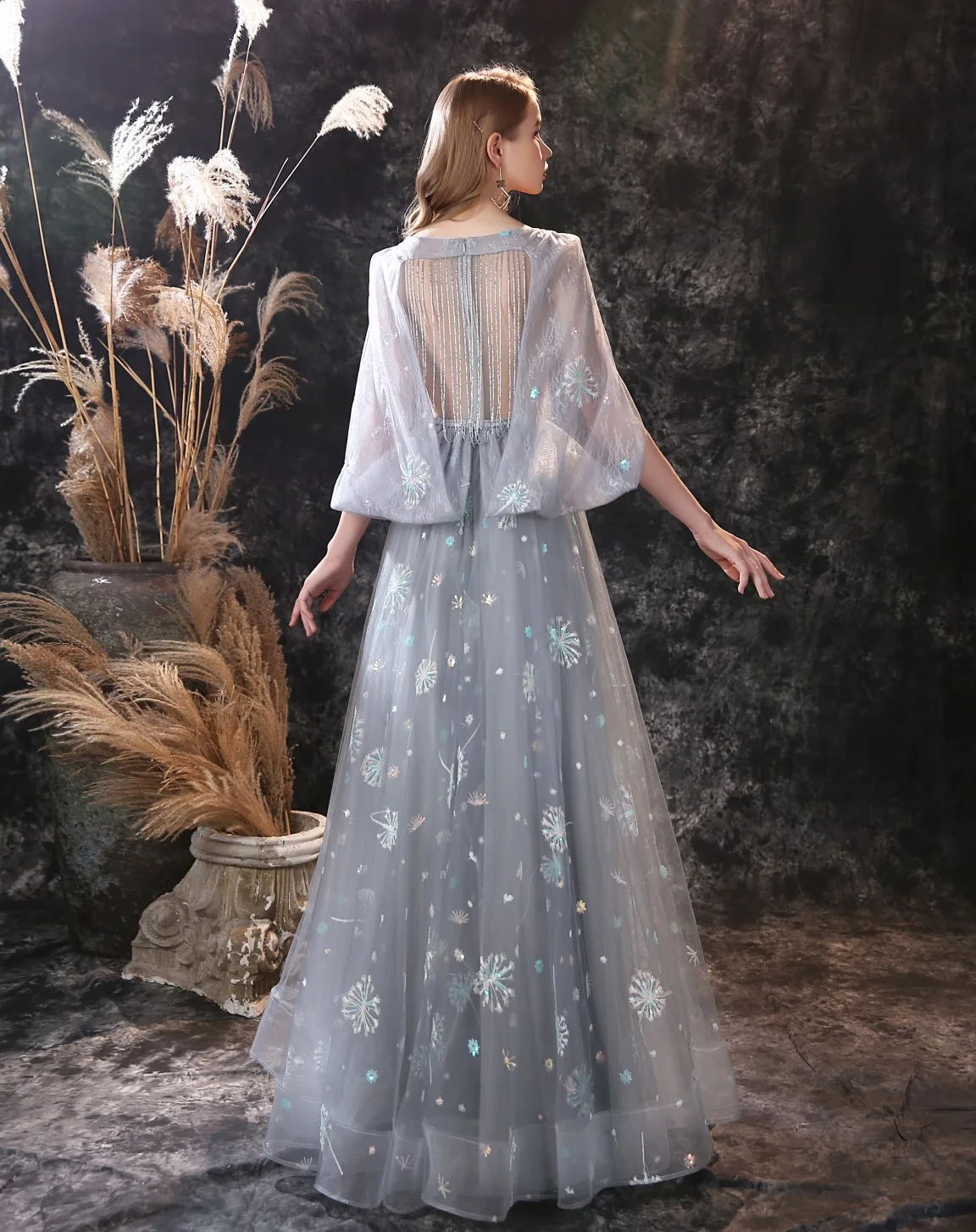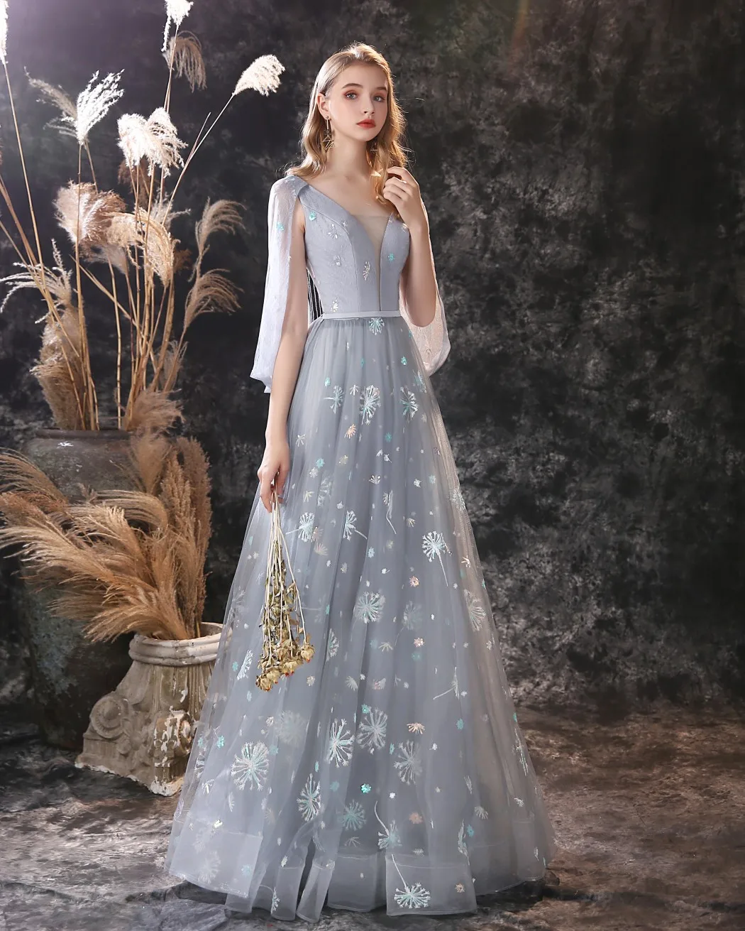 Соблазнительные вечерние платья с серебряными бусинами, вечерние платья с длинным рукавом-пагоды, прозрачные платья с глубоким V-образным вырезом и высоким разрезом для выпускного вечера