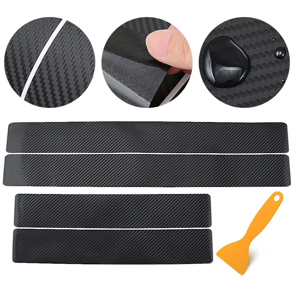 4 шт., Защитная Наклейка на порог автомобиля из углеродного волокна...