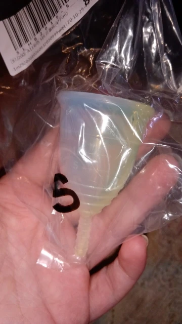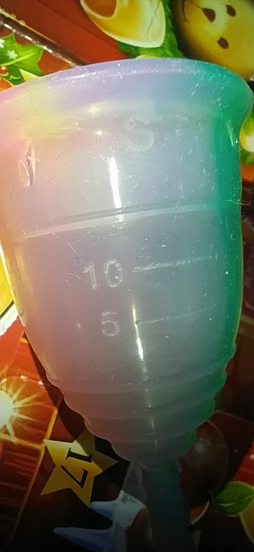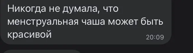 Моя первая чаша. Мне показалась чрезмерно твёрдой и, не смотря на размер s, - крупноватой. Ощущения были крайне странными и никак не удавалось забыть о ней.. Непередаваемо отвратительные ощущения, когда достаёшь ее, словно из тебя вытягивают жизнь вантусом, но это абсолютно оправданно, чтоб вся кровь оказалась в чаше, а не на руках.. к этому надо привыкнуть. Тем не менее, по моим ощущениям, чаша все же более удобная, гигиеничная и, конечно же более экологичная, чем стандартные гигиенические приспособления. Размер бы немножечко меньше и было бы найс. В этом же магазине заказала другую чашу s, так она ещё больше, хотя чуть мягче..