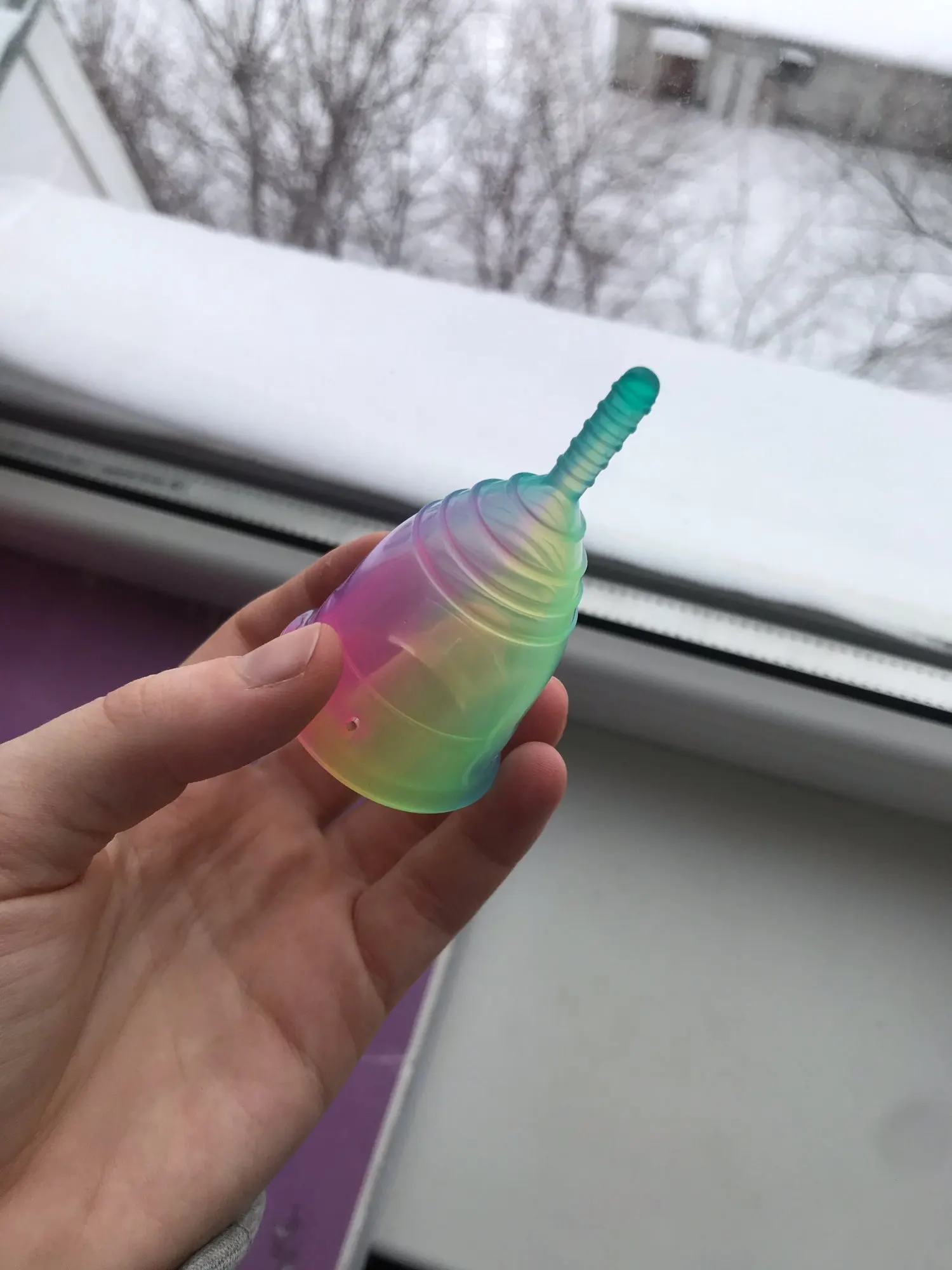 Интересная штука для меня. Новинка. Читала о них много, интересовалась как подобрать размер. L для рожавших, такую и выбрала. На фото именно этот размер, для наглядности с фоткала в ладони. Штука твердовата, но гибкая. Шло долго. Заказывала 11.11.20 пришло 12.01.21