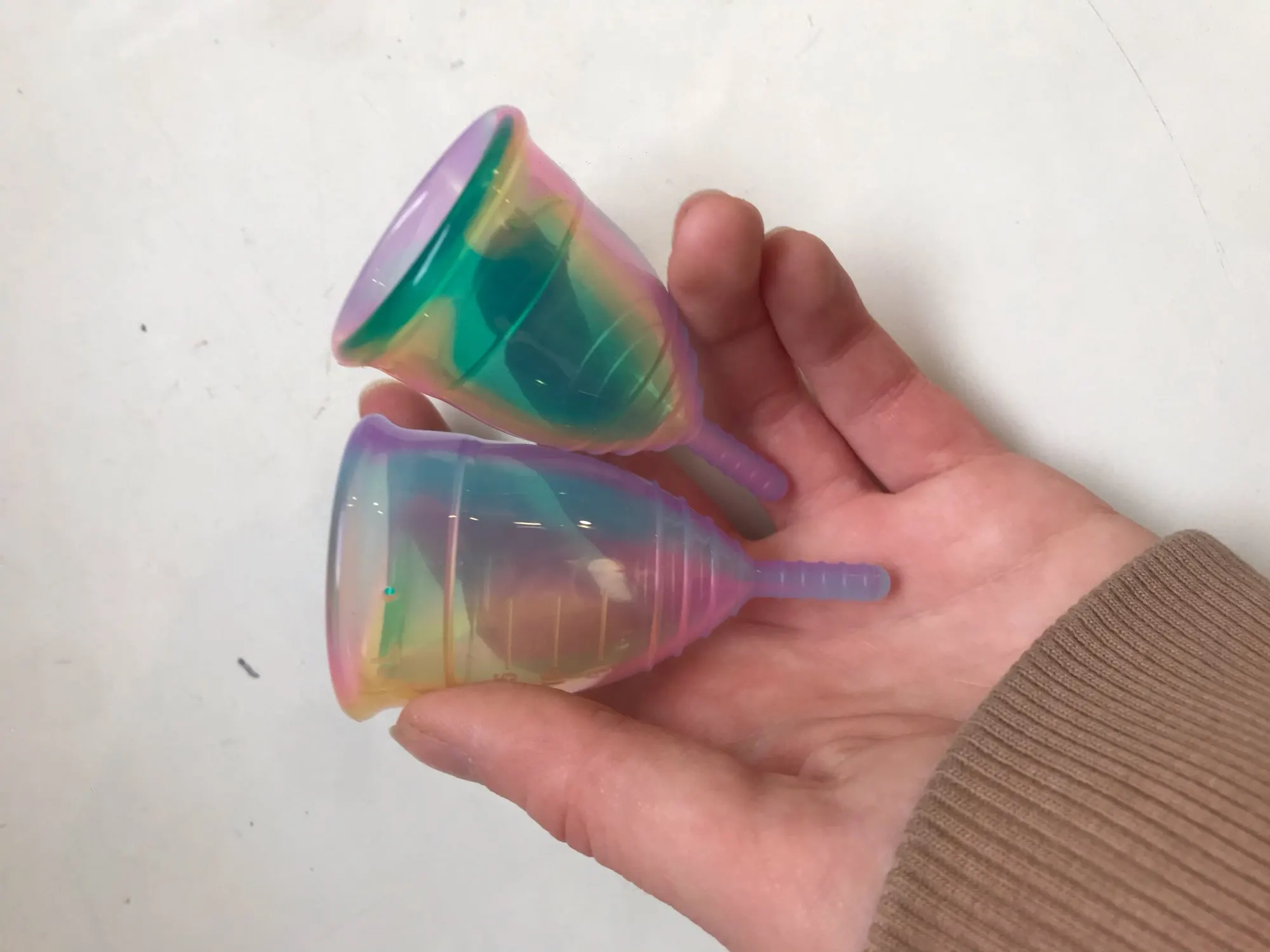 пришло в отличном состоянии, доставка заняла около месяца, упакована была вакуумный пакет и обычный пакет, чаша упругая, цвет приятный, без запаха, все чаши на фото s размера, с чем связано такое различие не понятно. я не пробовала в применении, так как кормлю грудью и не известно, когда что начнется. чашу определенно рекомендую :)) единственный минус: четыре дырочки проколоты не очень аккуратно, придется лохмотья обрезать - фигня. главное, чтобы она деле работала отлично (чаша радужная)