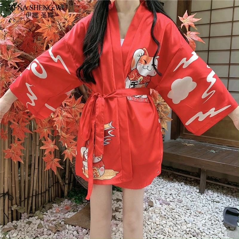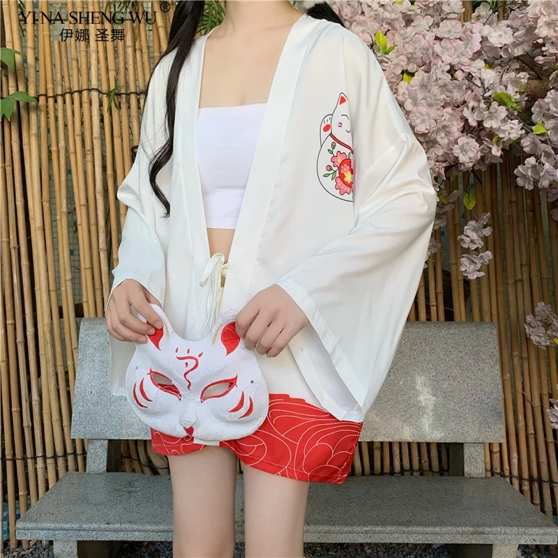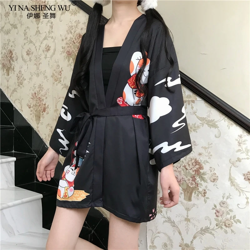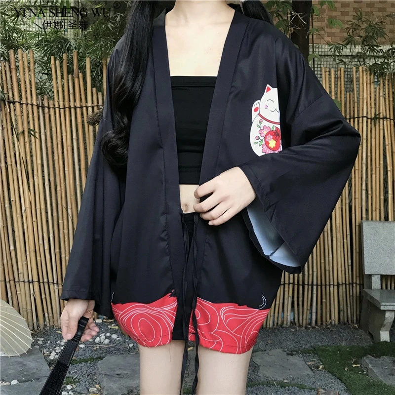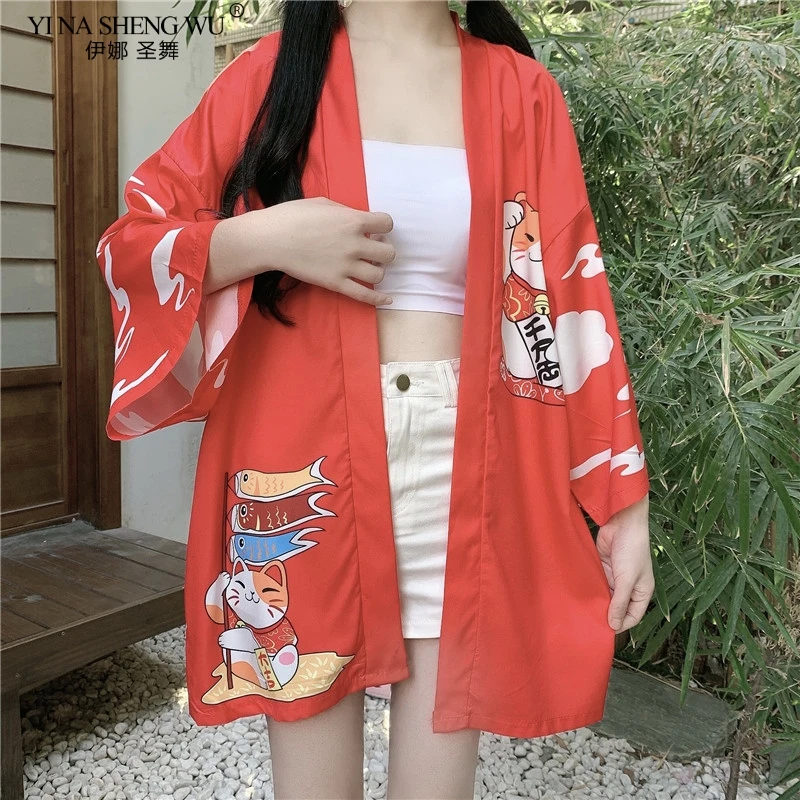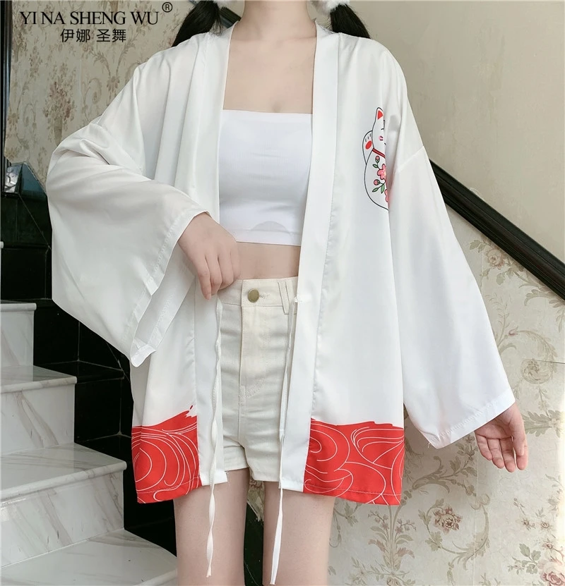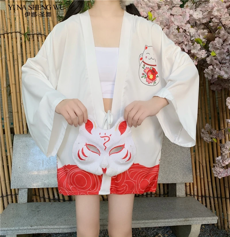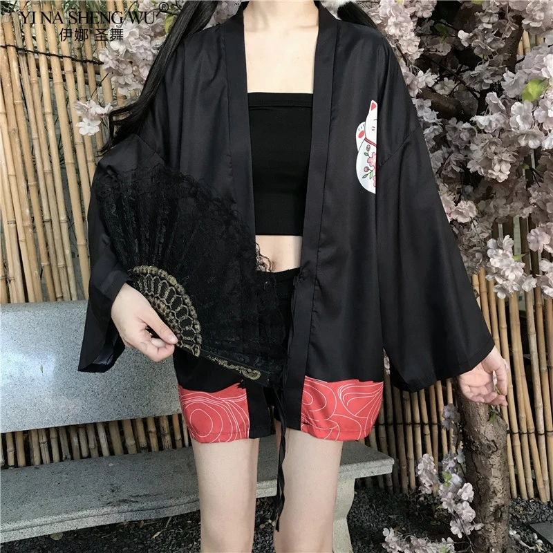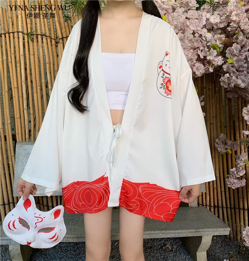 Кимоно с принтом кота в японском стиле, новинка, кардиган, женская Свободная Повседневная рубашка, топы, Kawaii Kimonos, пальто, Yukata, для девочек, Harajuku, азиатская одежда