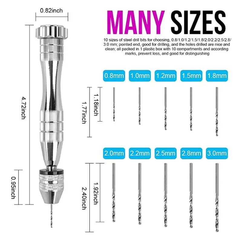 Помогает просверлить небольшие отверстия в смоле, дереве, пластике, полимерной глине, бусине, жемчуге или другой не слишком твердой поверхности,