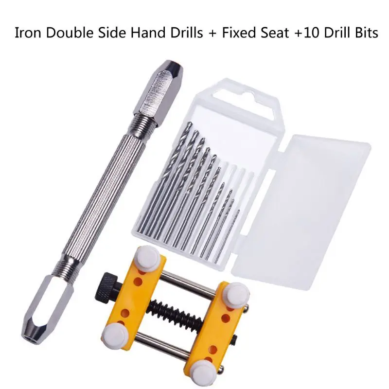 Железные двухсторонние ручные сверла + фиксированное седло + 10 сверл