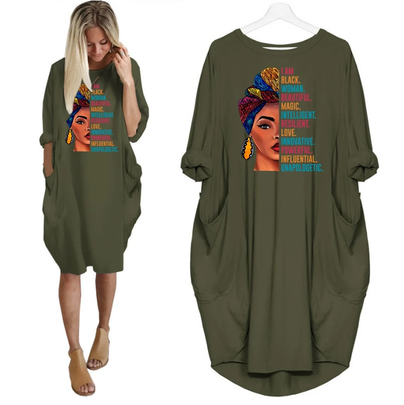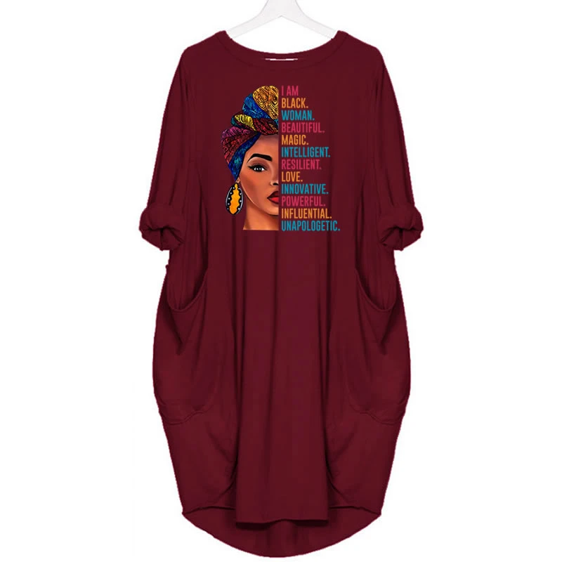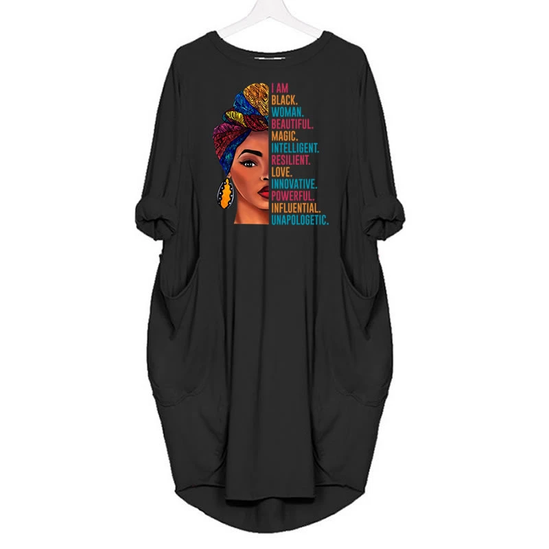 Африканское платье для женщин, Черное женское платье с карманами, блузка, Осень-зима, забавное женское платье-футболка, 100% хлопок, большой размер 5XL