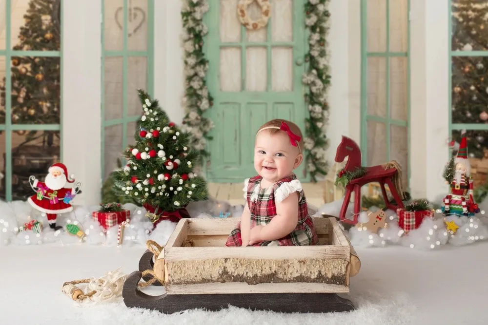 Фон для детской фотосъемки с изображением деревянного дома, рождест...
