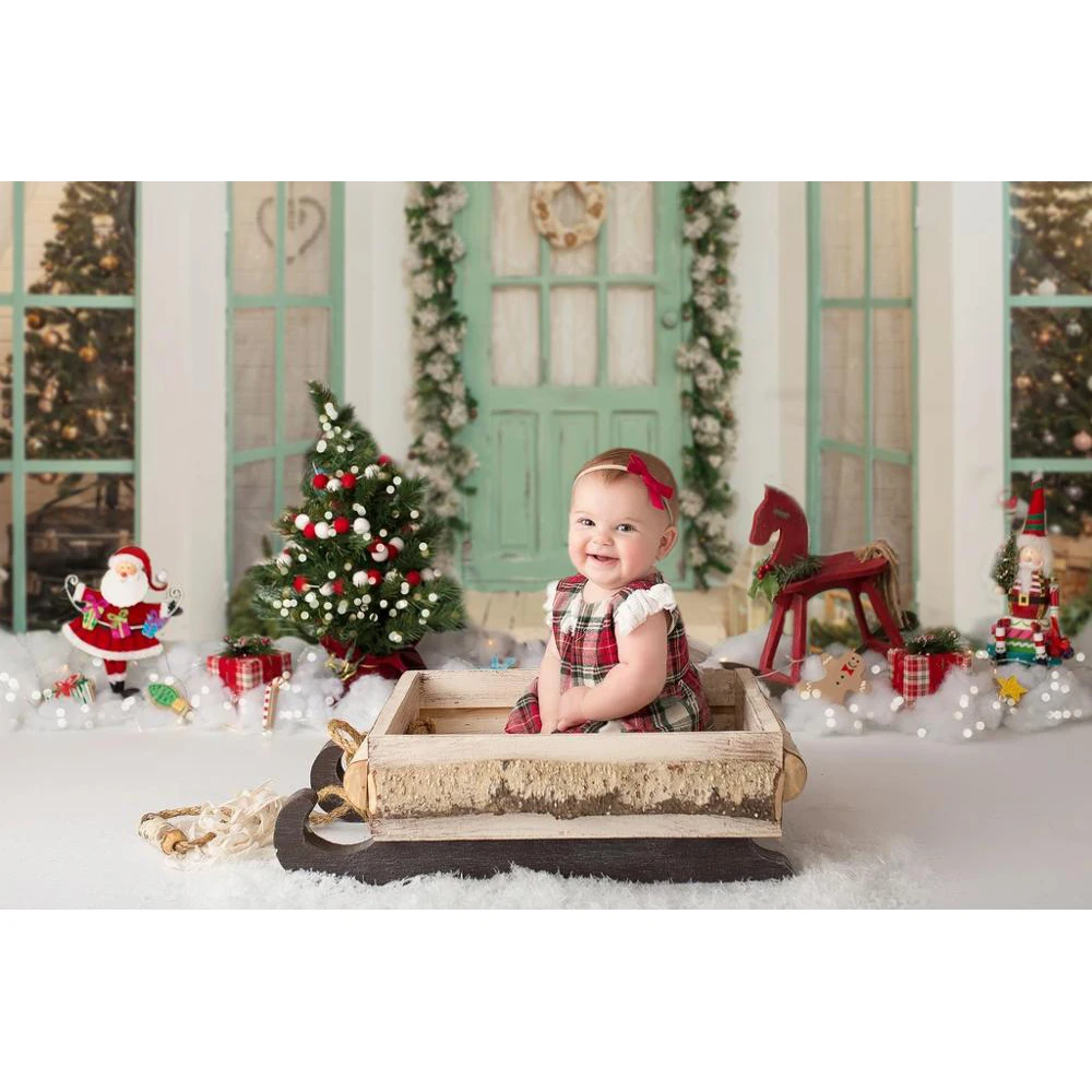 Рождественский фон для фотосъемки Голубой Дом венок Рождественская елка фон для фотосъемки подарок на день рождения