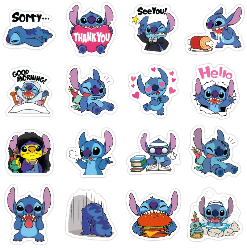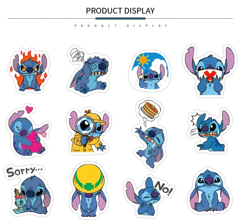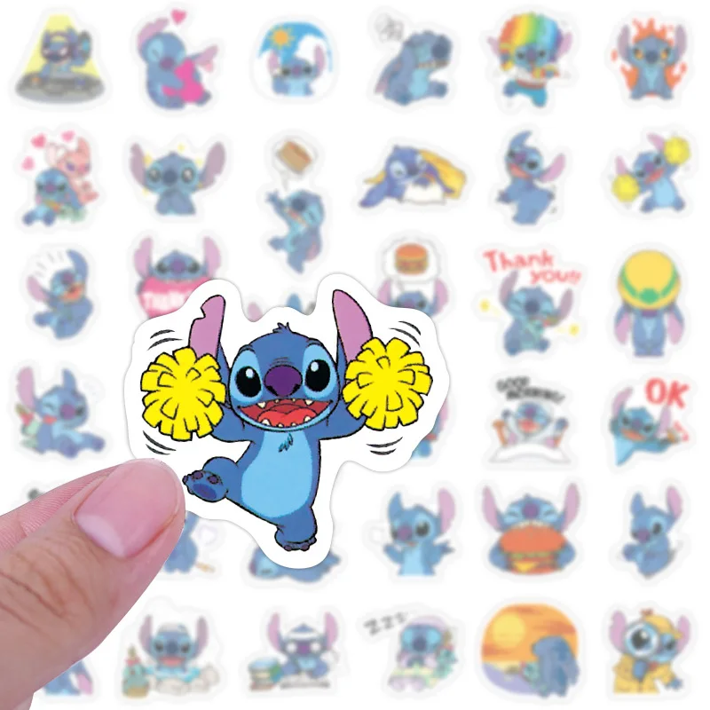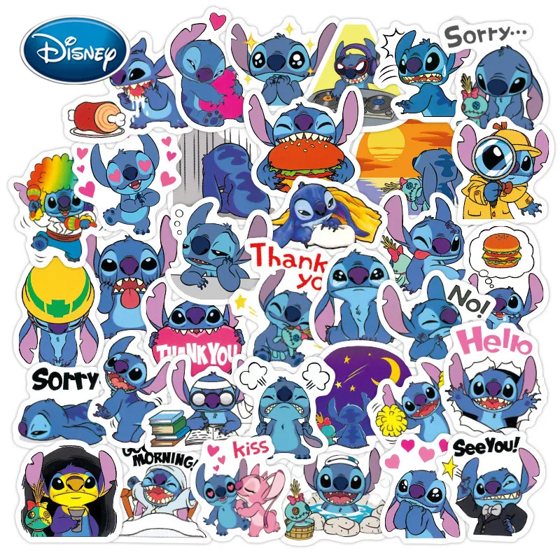 Disney, 50 шт в наборе, стежка мультфильм фон для детских фото в стиле детский Stitch Стикеры автомобиля Стикеры Чемодан Стикеры тележка Водонепроницаемый граффити Стикеры
