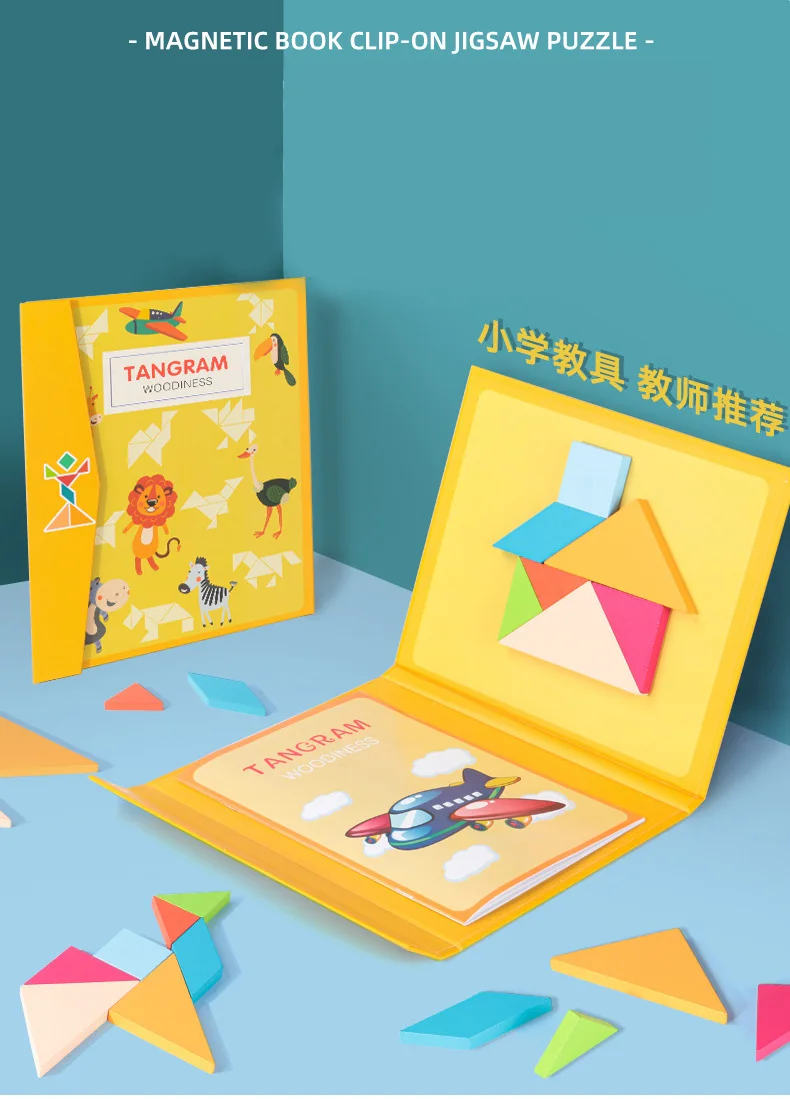 Название продукта: пазлВозраст:> 3 годаМатериал: ДеревянныйУпаковка: OPP мешокРазмер: 18*22 смСодержимое: Tangram * 1, справочная книга * 1, магнитная доска * 1