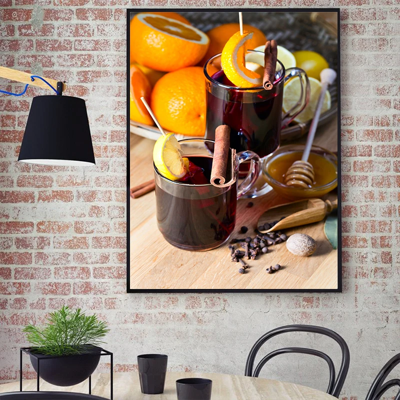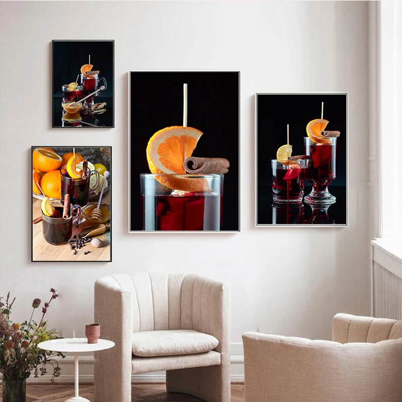 Апельсиновые фрукты красное вино коктейль холст живопись в скандинавском стиле плакаты современное искусство настенные картины для кухни комнаты украшение дома