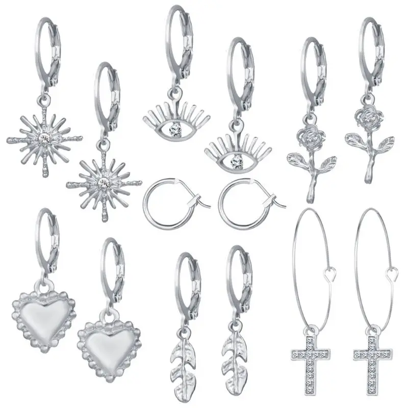 Набор сережек Huggie включает в себя 7 пар сережек-колец с кристаллами, звездами, сердцем и глазом,