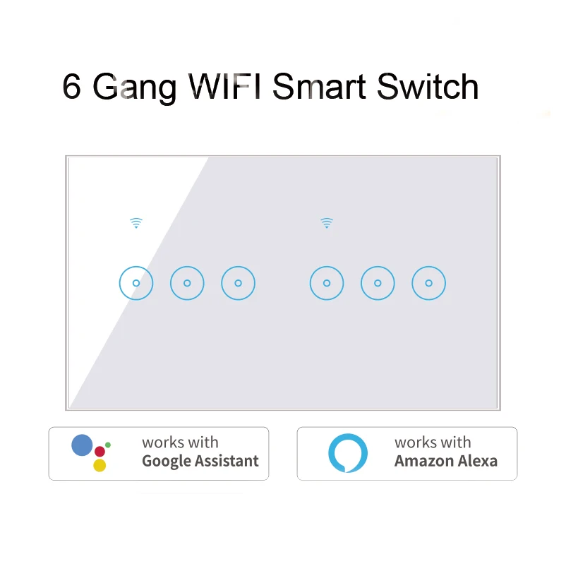 Умный настенный выключатель TuyaEwelink с Wi-Fi, 6 клавиш, Беспроводной светодиодный выключатель с дистанционным управлением, умный сенсорный экран из закаленного стекла, 95-250 В
