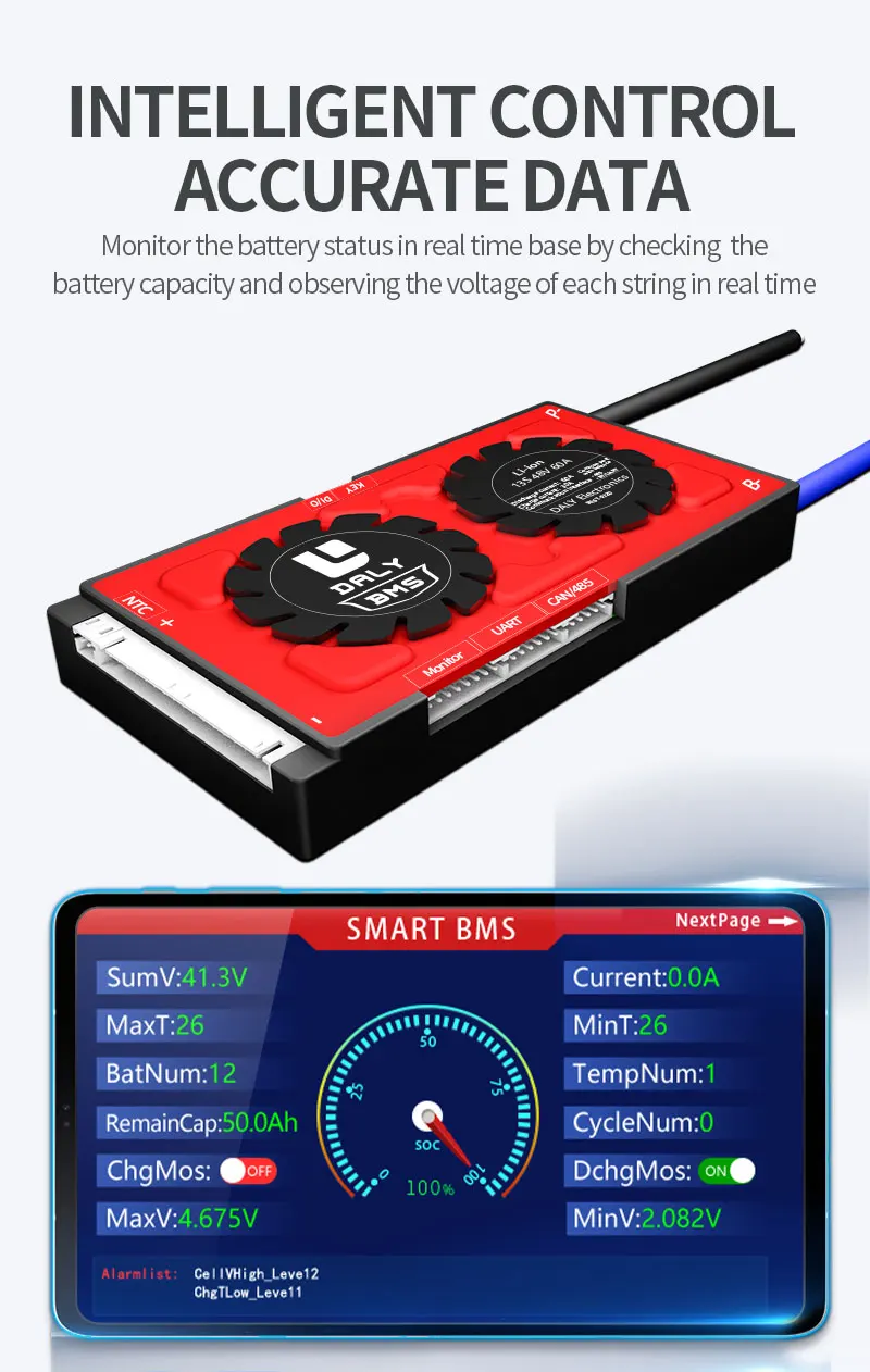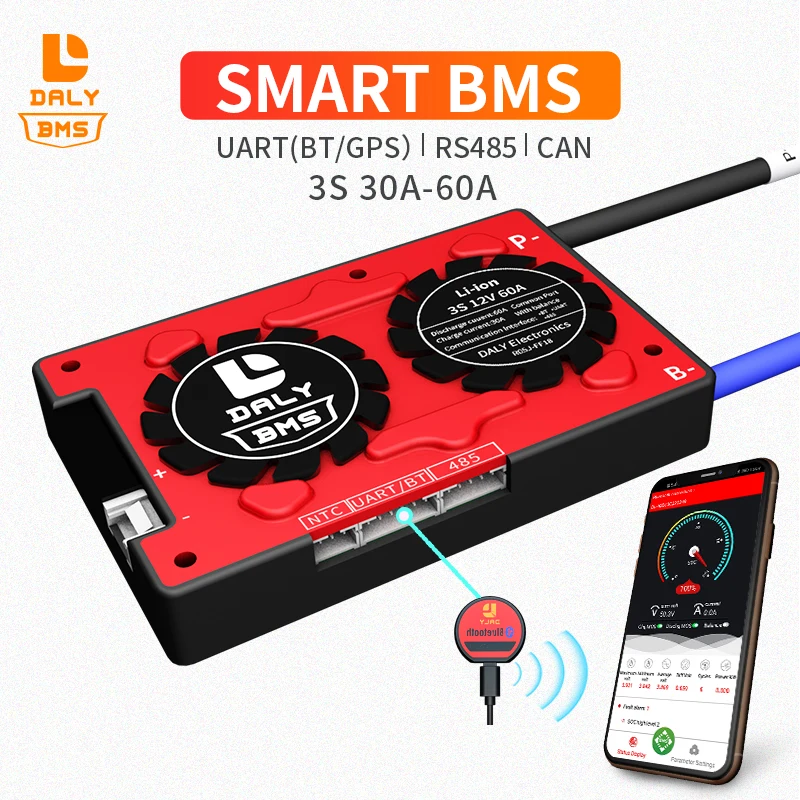 3,7 V Daly Smart BMS 3S 12V 30A 40A 60A UART BT с балансировочной платой может настроить параметры через приложение Bluetooth и ПК