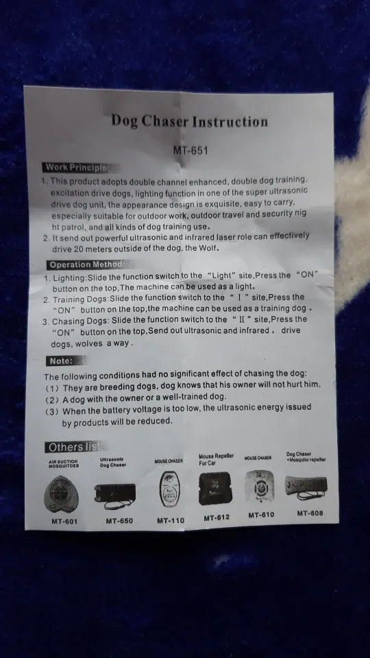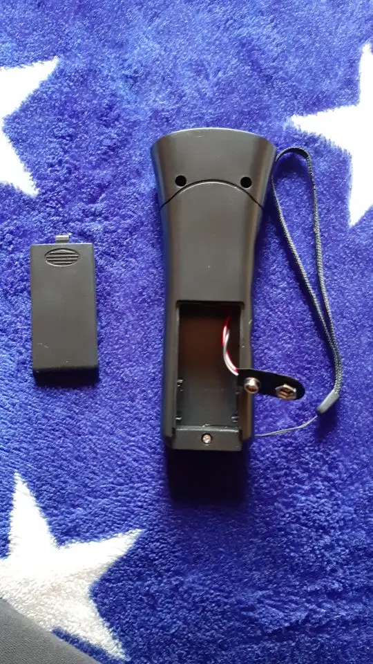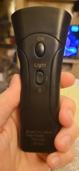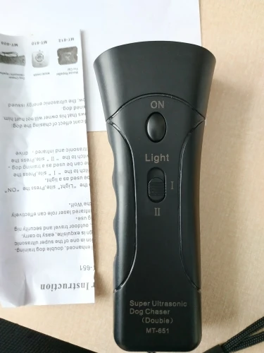 Очень быстро доставили, получено в целости, упаковка нормальная. За это продавцу спасибо! Была куплена батарейка Крона 9 V, работает, пищит на ультразвуке, человеческое ухо едва слышит. Светодиоды часто мигают. Есть режим обычного фонарика. Испытано было на небольших собачках, которые сразу обращают внимание на вас, но не убегают, а наоборот бегут к вам. Получается что эффект противоположный заявленному - не отпугивает, а привлекает животное. Крупные собаки никак не реагировали с расстояния около пяти метров. Правда собачки находились в спокойном состоянии. На агрессивных животных испытания не проводились.