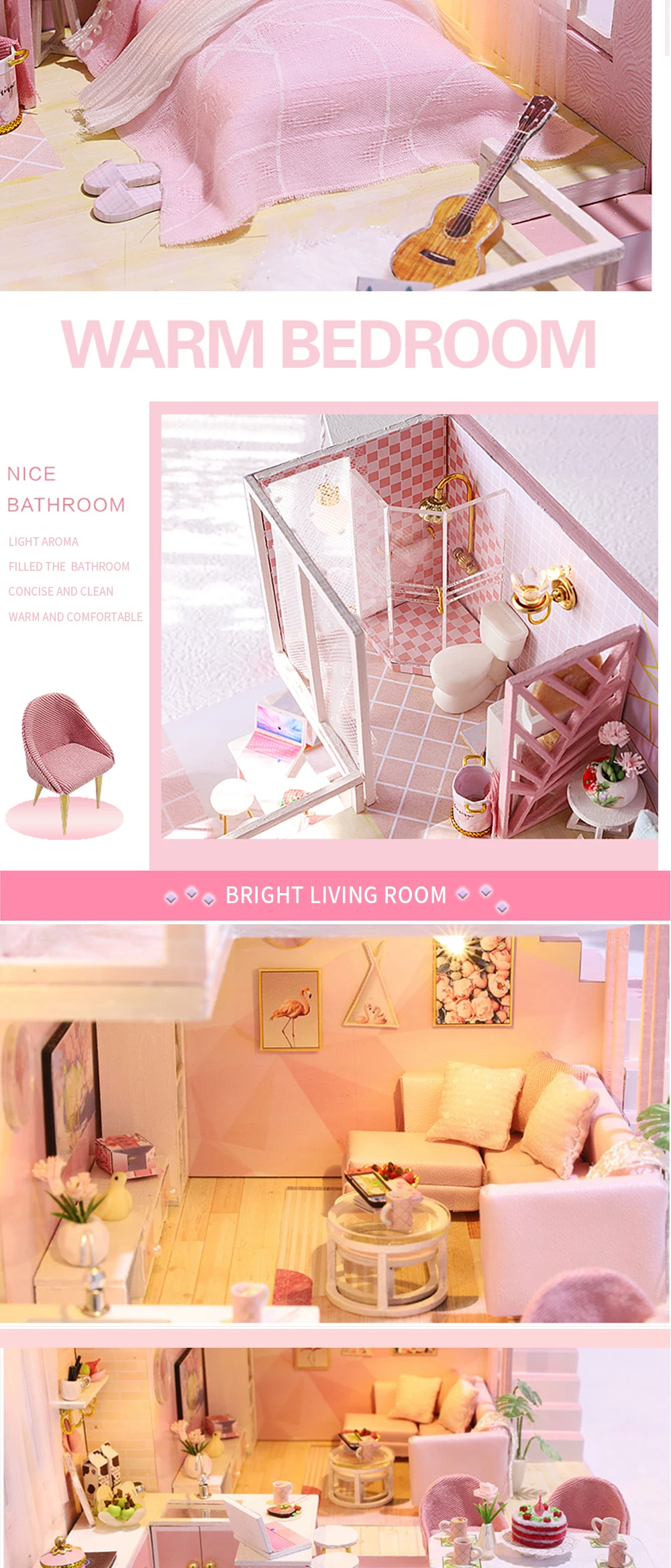 Подарок: купите 1 Кукольный домик и получите 1 Набор инструментов для сборкиВсе товары такие же, как на изображении. Они поставляются с деталями, и вам нужно собрать их самостоятельно.Если вы, наконец, столкнулись с какими-либо проблемами в процессе установки, пожалуйста, свяжитесь с нами1. Включает в себя всю мебель2. Готовый размер: 20*17*16,5 см3. Материалы: дерево, ткань, бумага, смола, пластик, матель (с музыкальной шкатулкой)4. Руководство: с инструкциями5. Вы можете выбрать товар С Пылезащитным чехлом или без пылезащитного чехлаПримечание:1. Не включает клей/аккумулятор.2. Возраст: для детей старше 8 лет3. Дети младше 3 лет должны сопровождаться взрослым4. Если вам понравился этот товар, добавьте его в «список желаний».Если вам нравится наш магазин, добавьте его в «Список магазинов».Мы предоставляем профессиональный сервис прямых покупок. Мы гарантируем, что в посылка входят счета-фактуры, рекламные материалы, визитки. Кроме того, мы предоставляем полный сервис отслеживания груза, чтобы обеспечить безопасное прибытие груза.