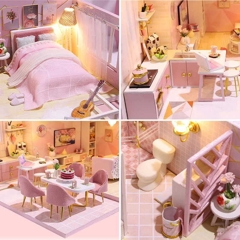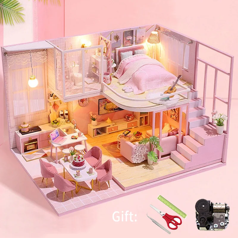 Миниатюрный Кукольный домик сделай сам, модель мебели комплект для кукольного дома, Румбокс, деревянные игрушки для детей, рождественские виллы, подарок для взрослых