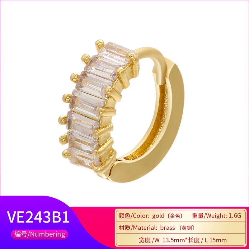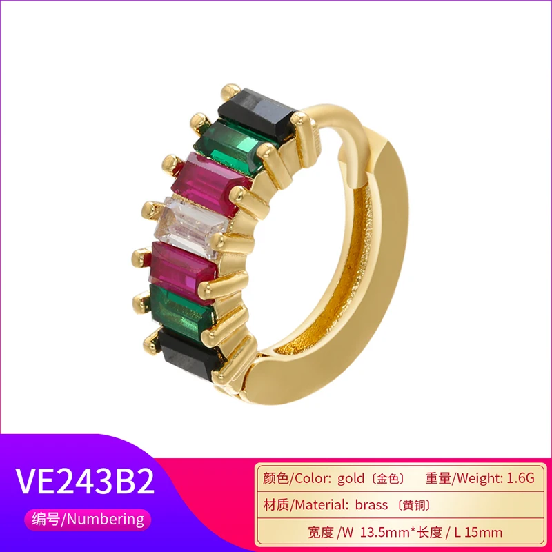 Женские серьги-кольца ZHUKOU, маленькие серьги-кольца золотого и серебряного цвета с кристаллами фианита радуги, 1 шт., 2020x15 мм, модель: VE243, 13,5