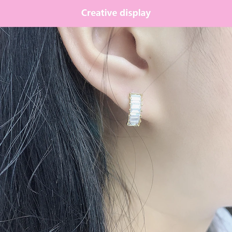 Даже на моем не худом ухе сережки съезжают вперёд так, что видно «палку», которая должна быть в дырке и не видна.