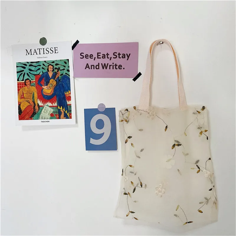 Сумка-тоут женская с вышивкой, светильник легкая прозрачная сетчатая сумочка-желе из органзы, тоут на плечо со сказочной вышивкой, 1 шт.