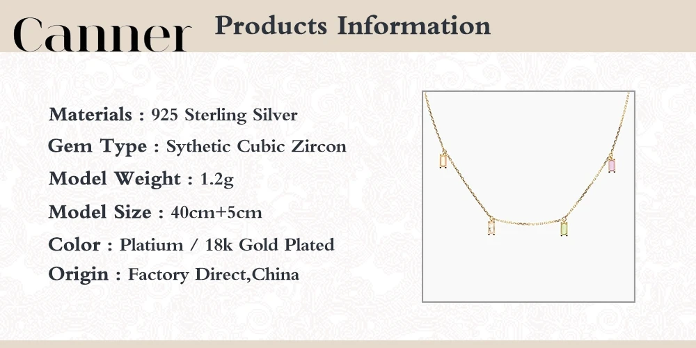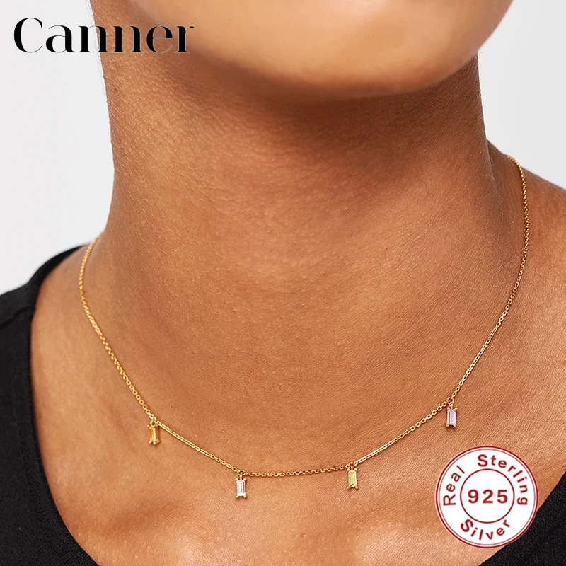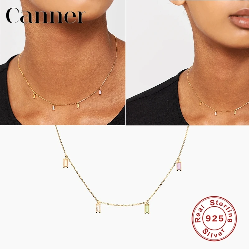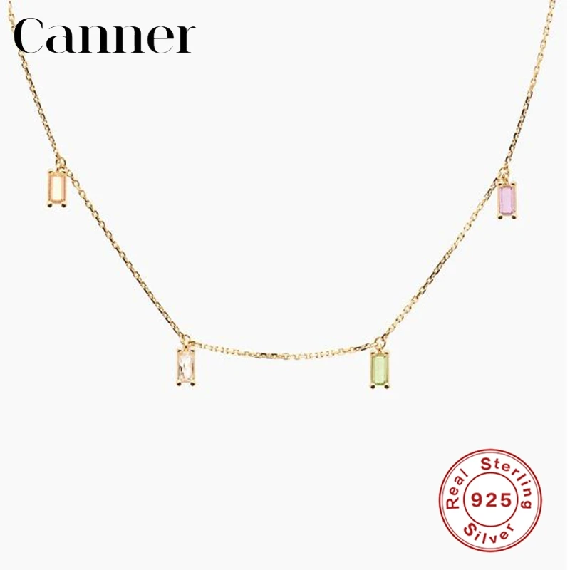 Canner красочные 925 стерлингового серебра ключицы ожерелье квадратное ожерелье из циркона ожерелье для женщин Свадебные ювелирные изделия joyas bijoux W5