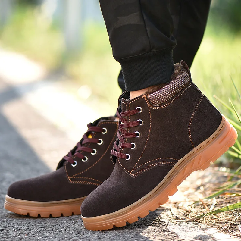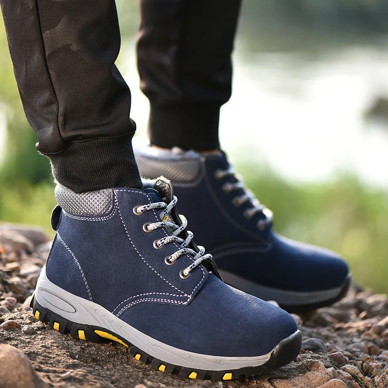Ботинки мужские высокие со стальным носком, дышащие, без застежки, Повседневная защитная обувь
