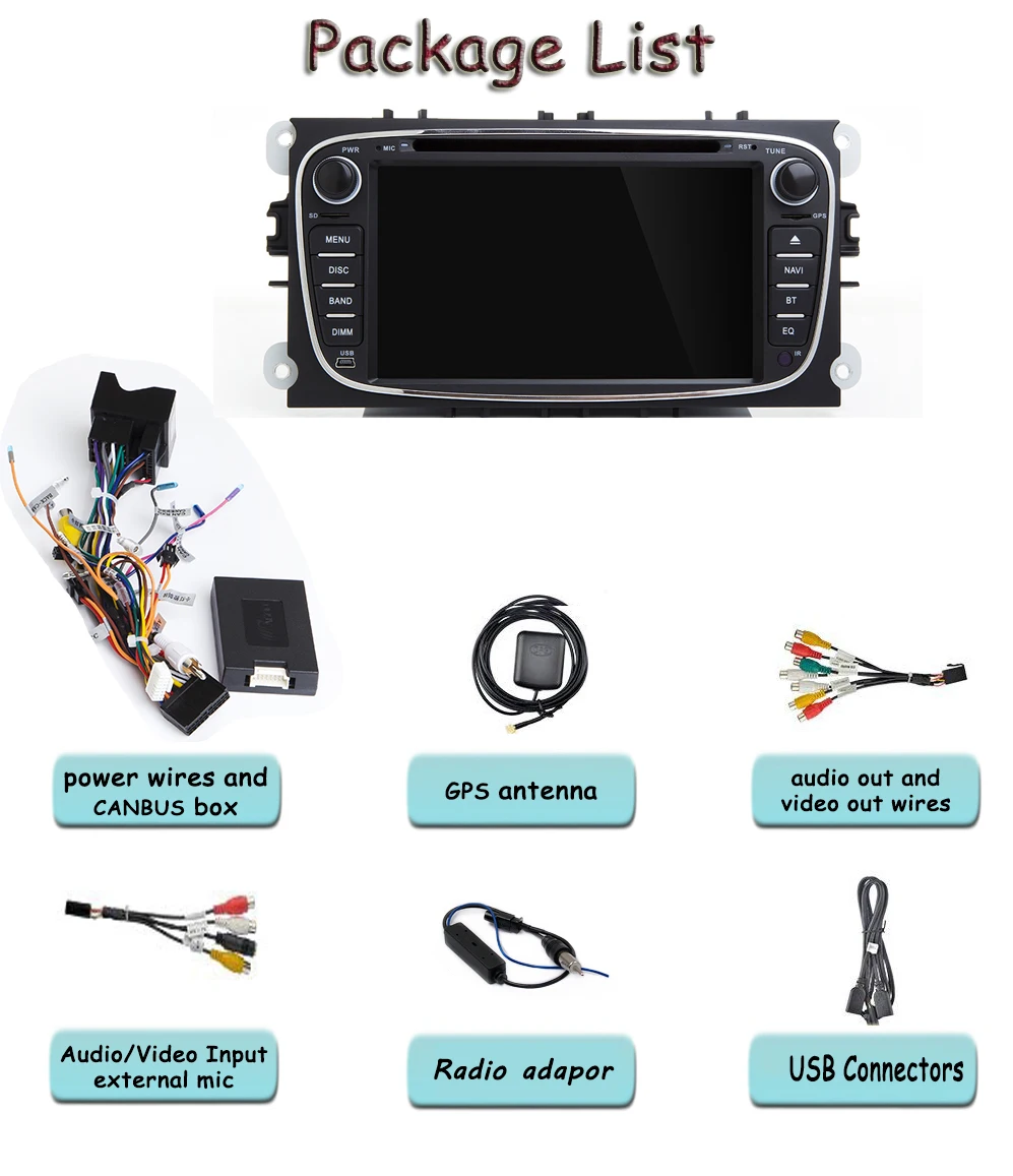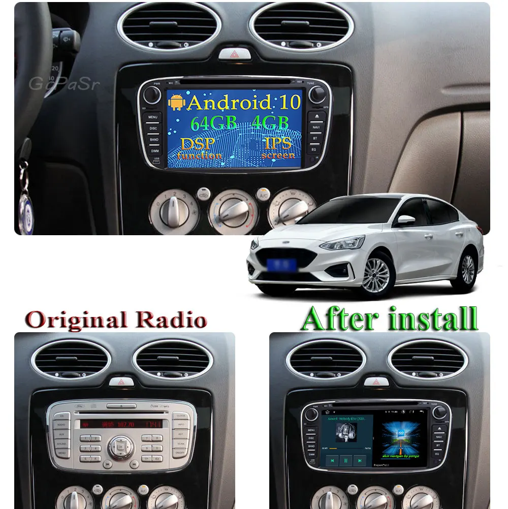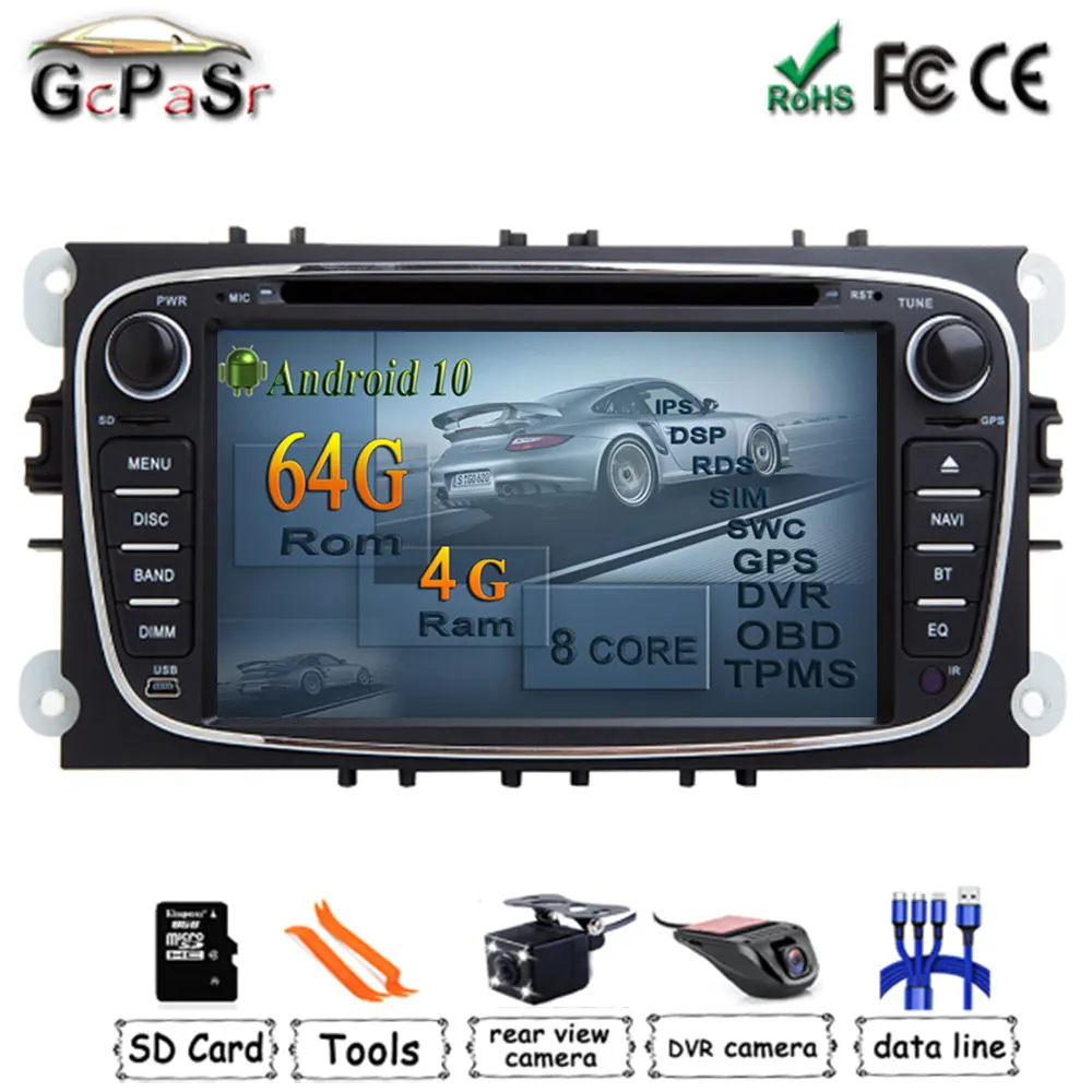Автомобильный DVD-плеер, мультимедийный плеер с IPS экраном на Android 10, GPS для Ford Mondeo Focus SC Max Galaxy Kuga с Wi-Fi, BT, стерео радио