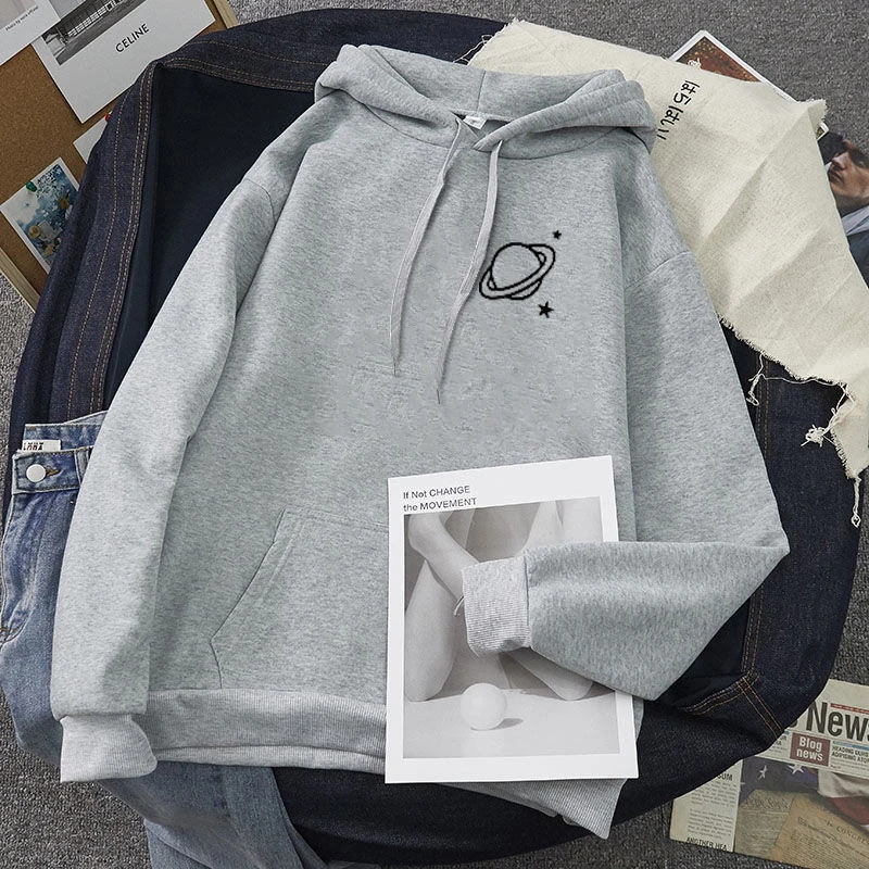 Толстовка с капюшоном Space station Saturn, 10 цветов, Вельветовая, зимняя, для студентов, с милым принтом, утепленная, для осени