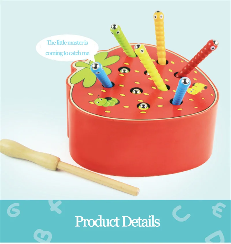 3D деревянная головоломка, магнитная игра-червь, познавательная клубника, яблоко, способность захватывать Ранние развивающие игрушки для детей