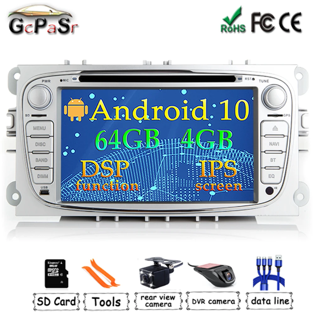 Автомобильный DVD-плеер, мультимедийный плеер с IPS экраном на Android 10, GPS для Ford Mondeo Focus SC Max Galaxy Kuga с Wi-Fi, BT, стерео радио