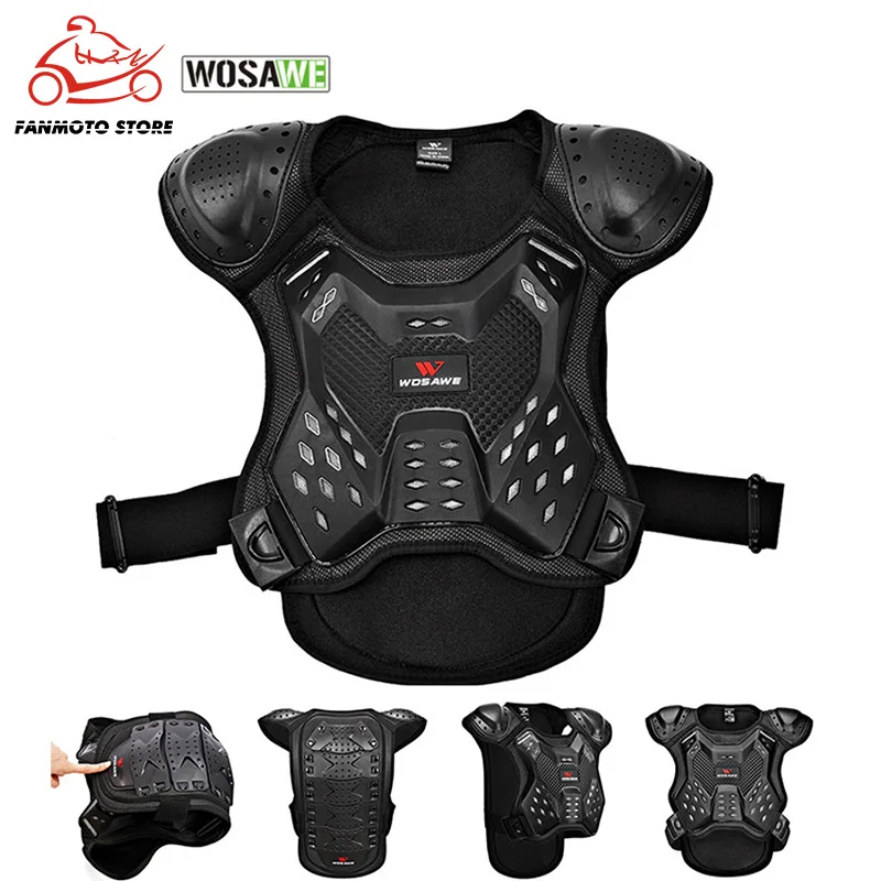 WOSAWE От 5 до 15 лет детский мотоциклетный бронированный нагрудный протектор для позвоночника с повязкой на спине для катания на лыжах, мотоциклетный жилет