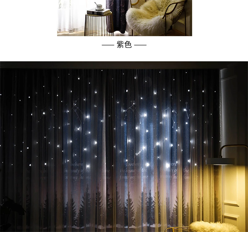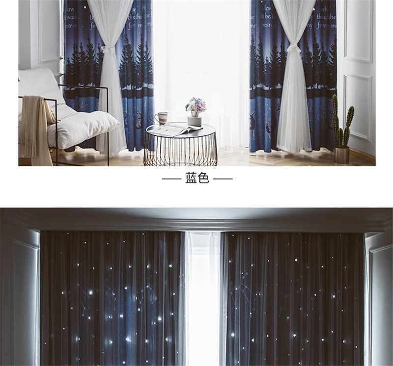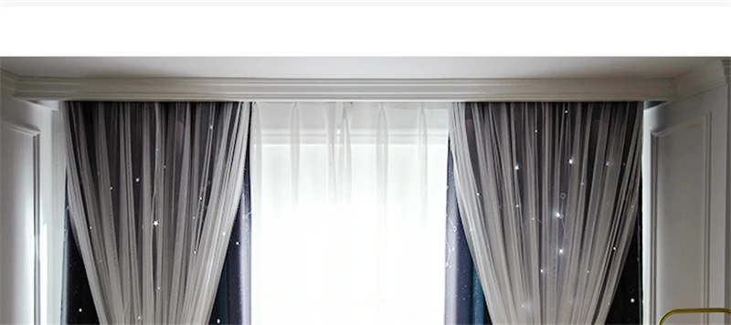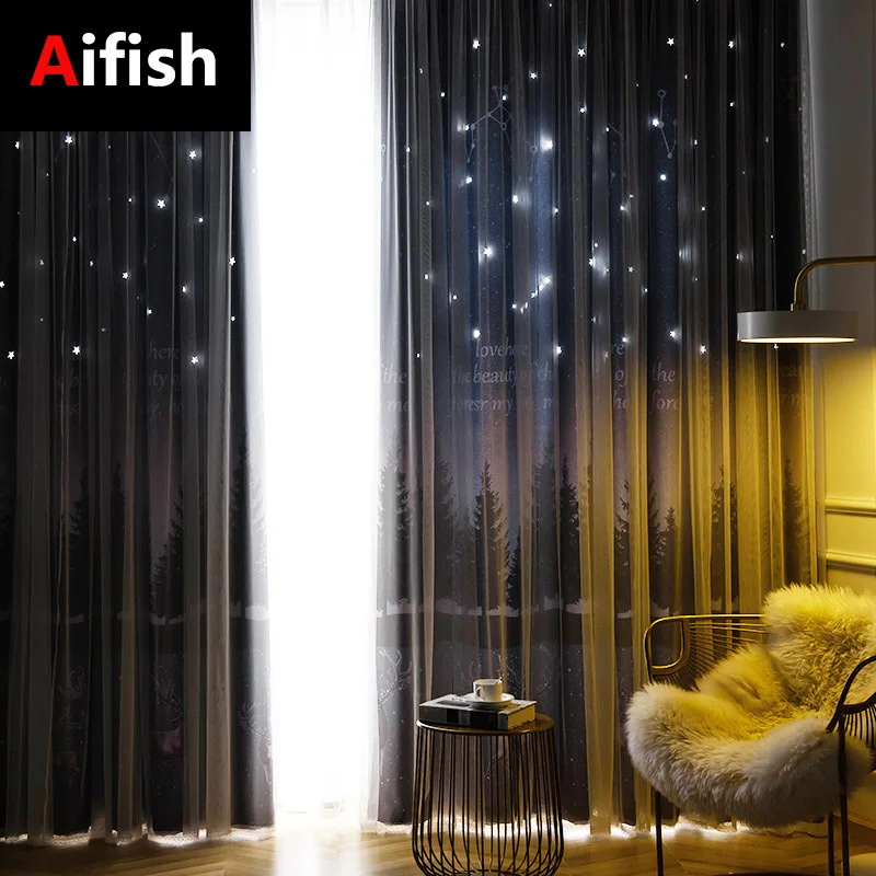 Двойной спальня эркерное окно шторы Nordic простой перфорацией в виде звезд детская комната плотные шторы украшения из белого тюля TM078-4