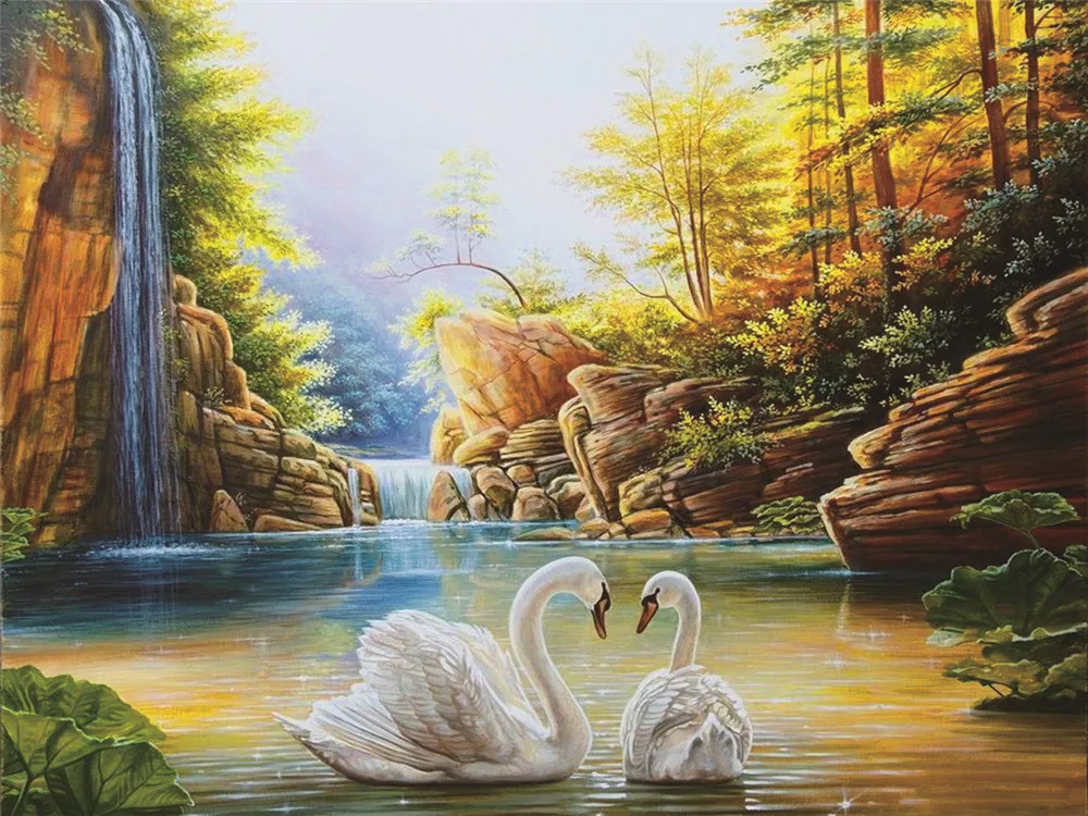 Алмазная живопись, животные, лебедь, птица, 5d, мозаика сделай сам, полностью квадратная, круглая, сверло, Алмаз Стразы, алмазная вышивка, картины, распродажа