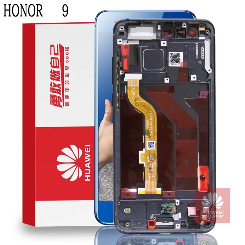 100% Оригинальный дисплей 5,15 дюйма с рамкой для Huawei Honor 9 STF-L09 STF-AL10, ЖК-дисплей с тачскрином и дигитайзером, запасные части