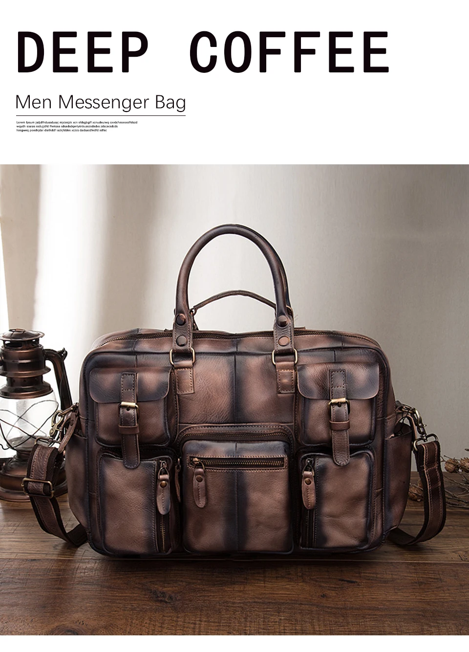 Оригинальный кожаный уникальный кофейный деловой портфель, сумка-мессенджер, Мужской дизайнерский Дорожный Чехол для ноутбука и документов, сумка-тоут, портфель, 3061