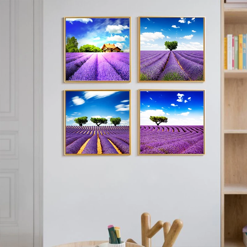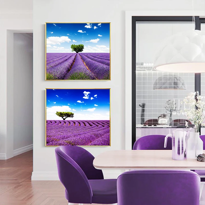 Лаванда и дерево голубое небо домашний декор канва настенная живопись картина фиолетовые цветы Прованс картина современное искусство, пейзаж
