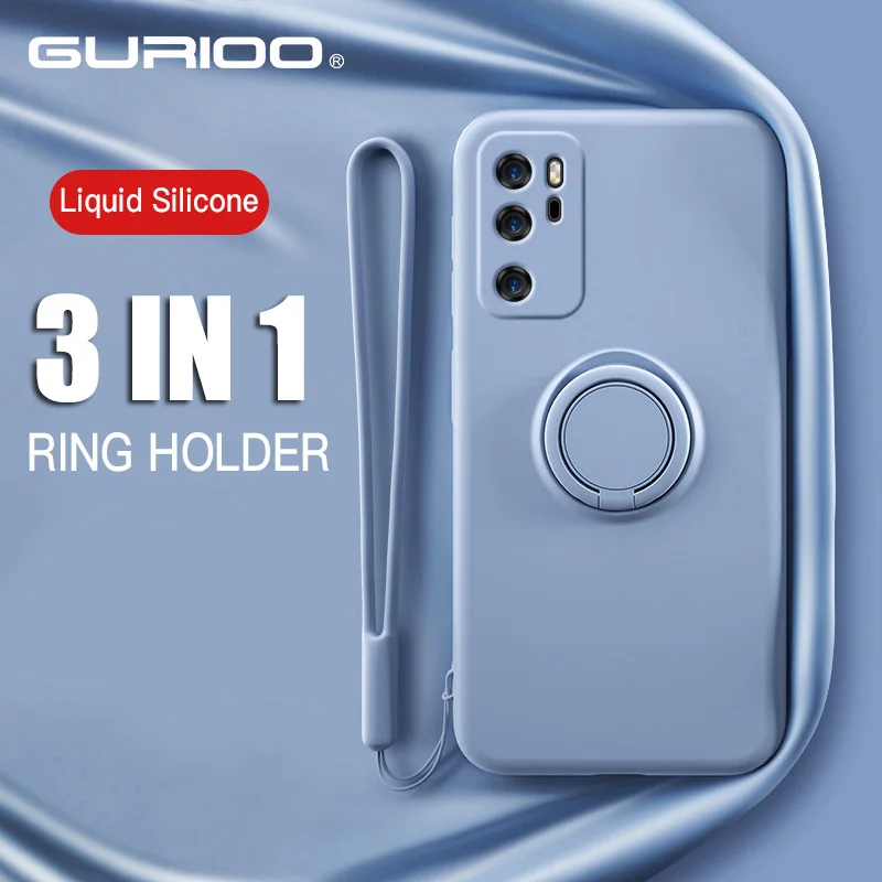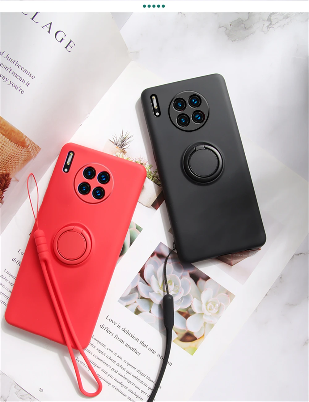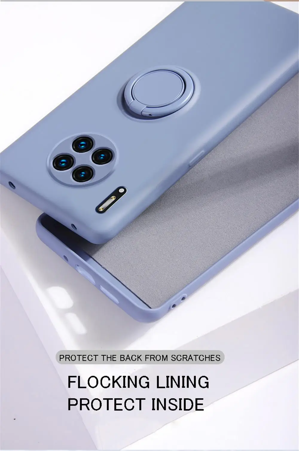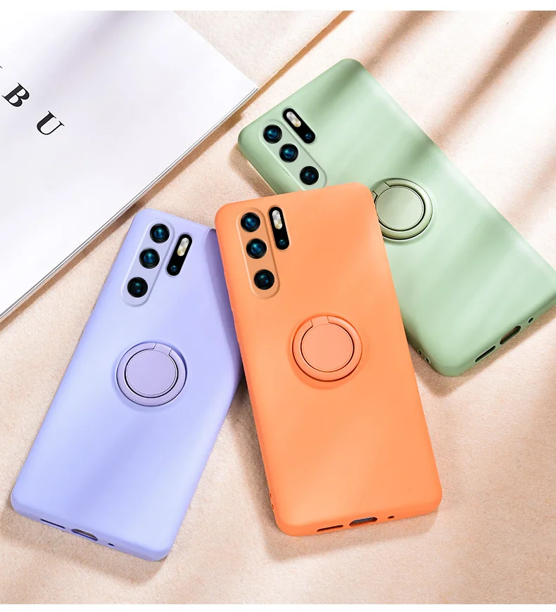 Жидкий силиконовый чехол с кольцом-держателем для Huawei P20 P30 P40 Mate 20 30 Lite Honor 50 Pro Nova 5T 6 7, мягкий магнитный автомобильный чехол-подставка