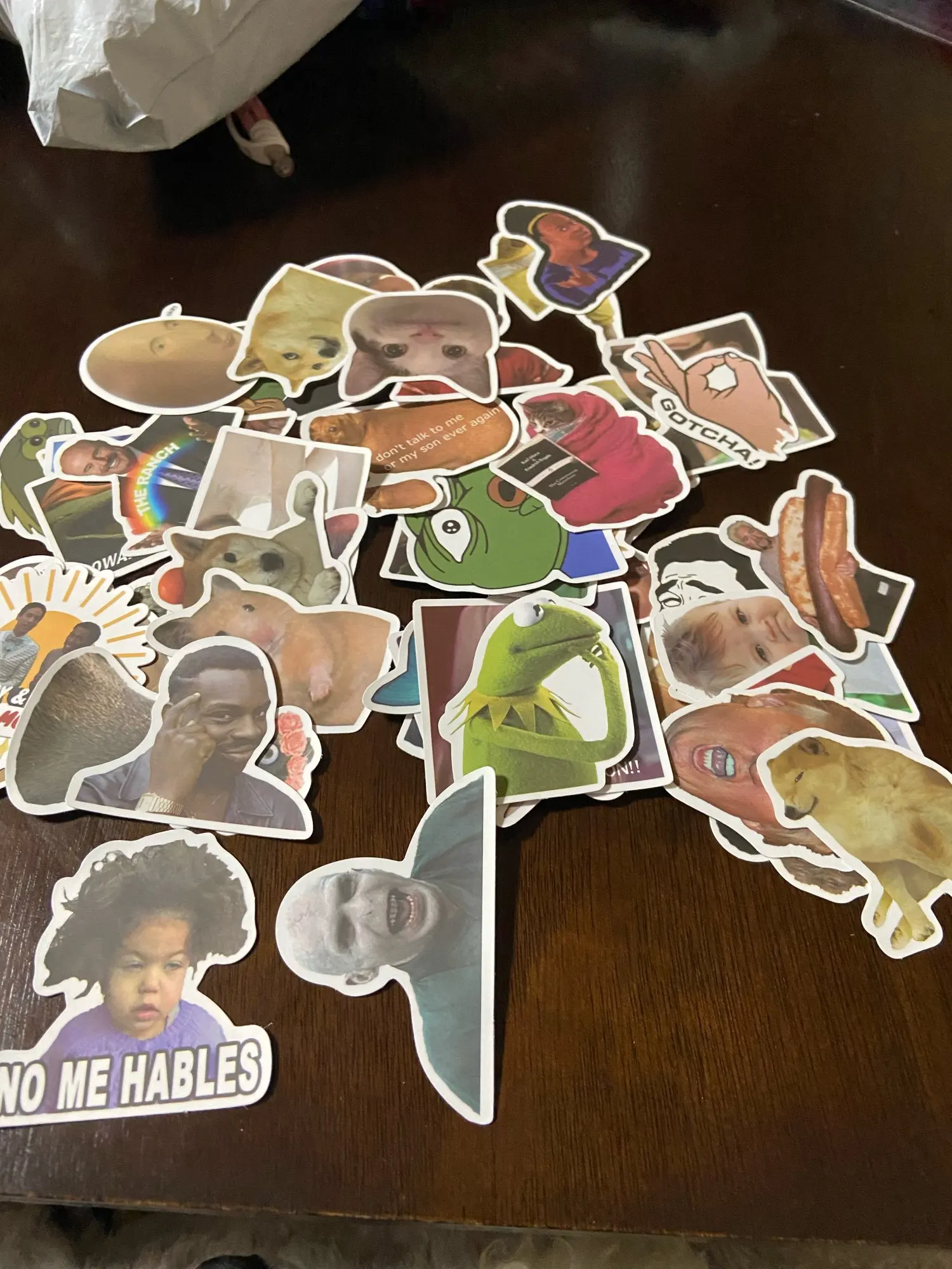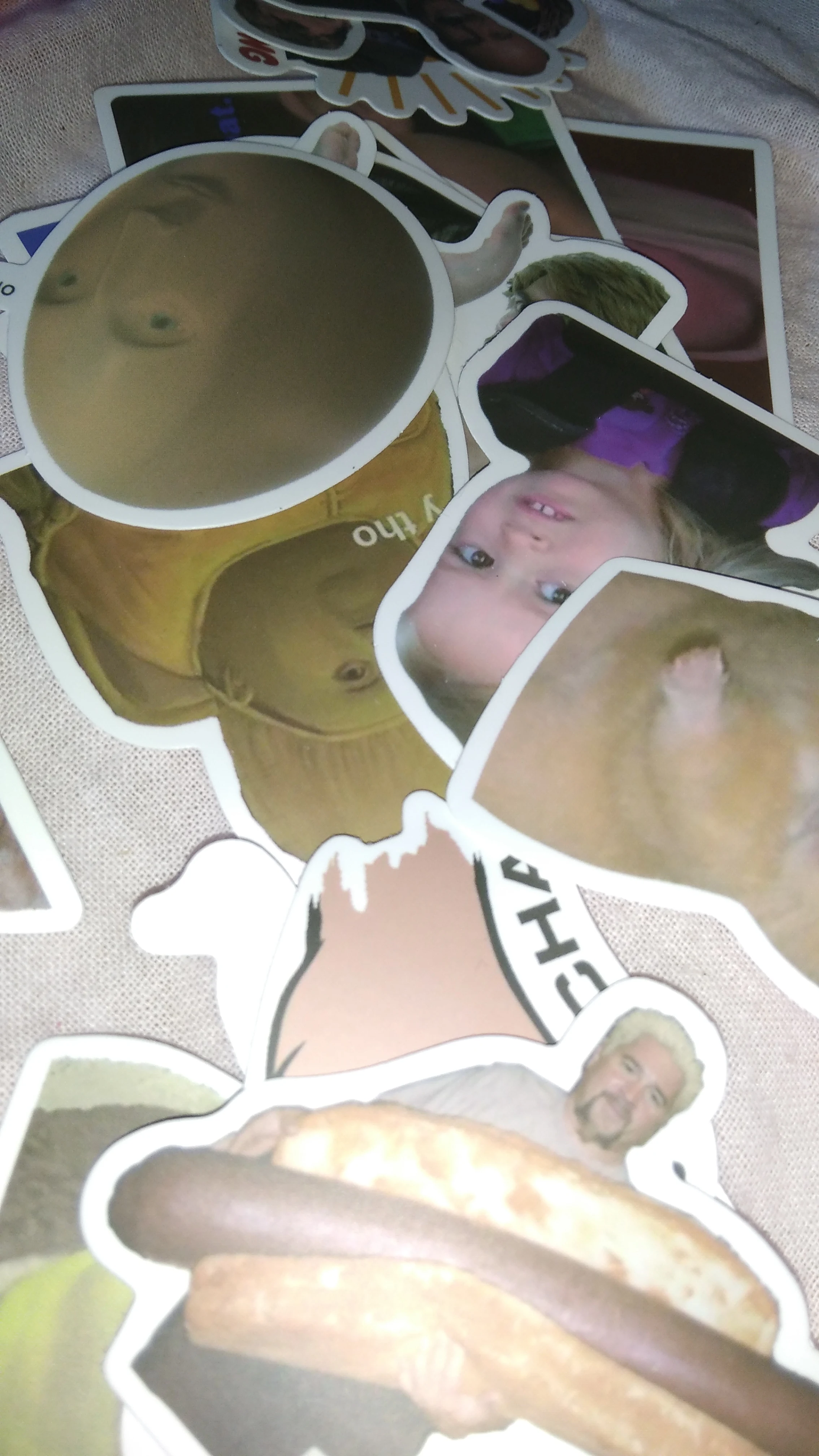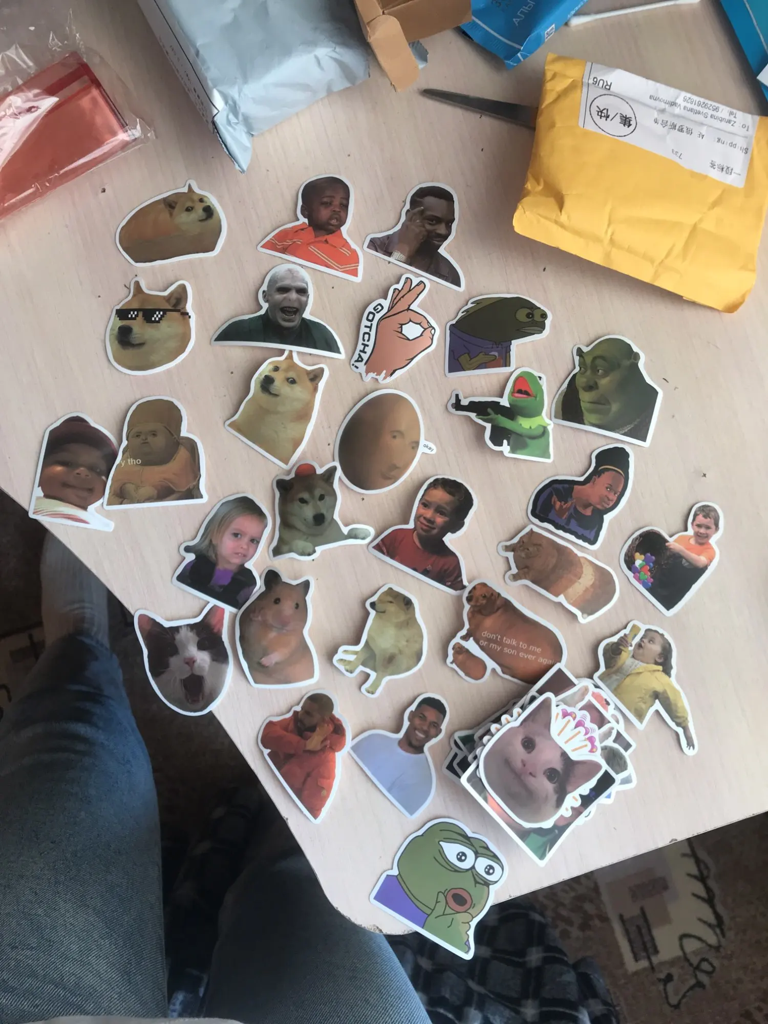 довольно хорошие наклейки, держатся надежно, хотелось бы добавить русских мемов, а в остальном все хорошо
