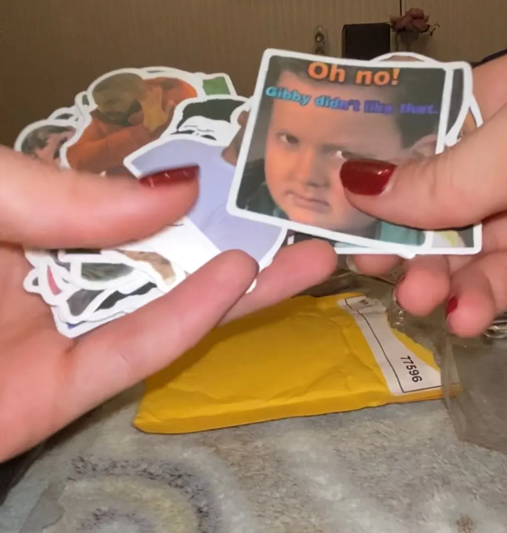 до казани доставка 3 недели, отправили быстро. На таможне соединили с еще тремя другими заказами в один пакет. Наклейки матовые. к сожалению, сами по себе тусклые, но ничего страшного, потому что это же мемы, это СКРИНЫ, вырезанные из контекста, они априори будут плохого качества (надеюсь, вы поняли, о чем я). Один хомячок чего стоит, обожаю его!!! в общем, прикольная покупка, порадовалась