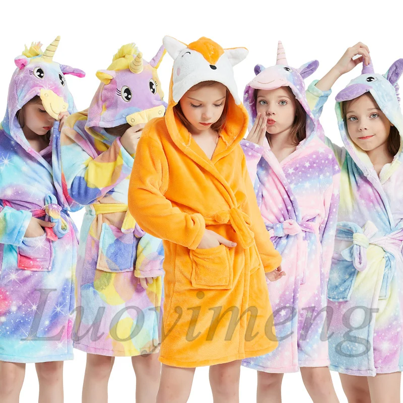 Детский банный халат с капюшоном и единорогом, детский ночной банный халат, Kigurumi, одежда для сна с животными для девочек и мальчиков, банные халаты