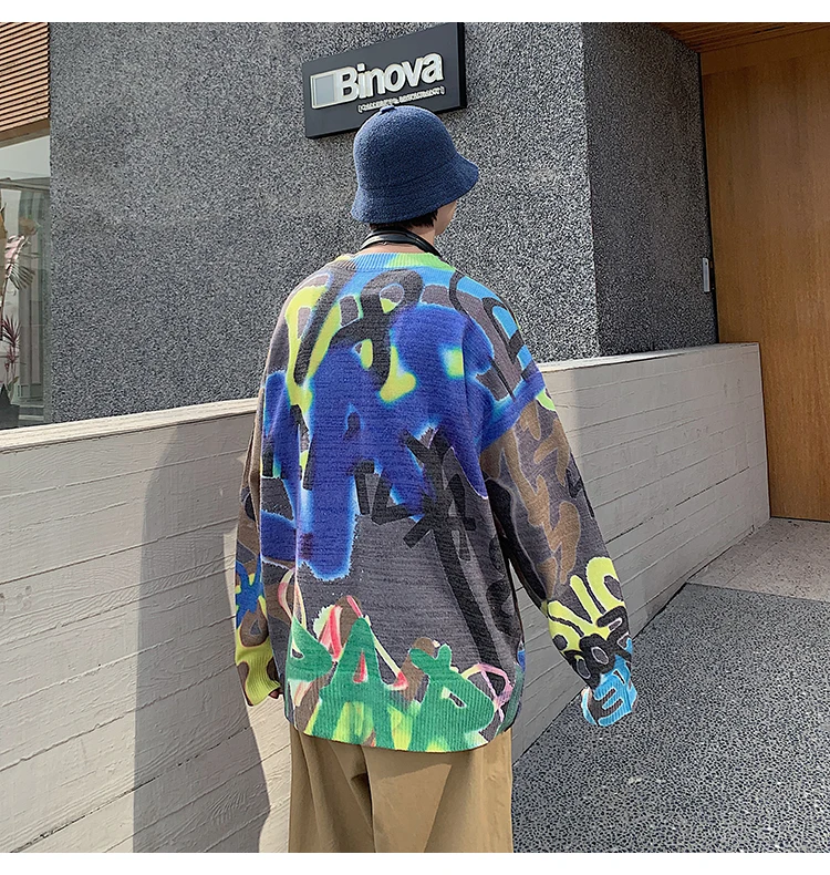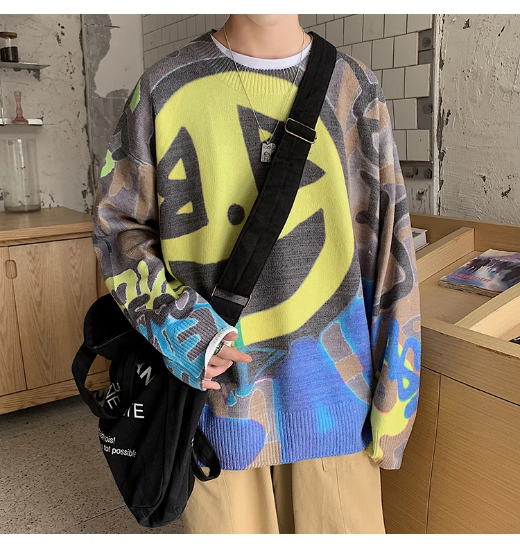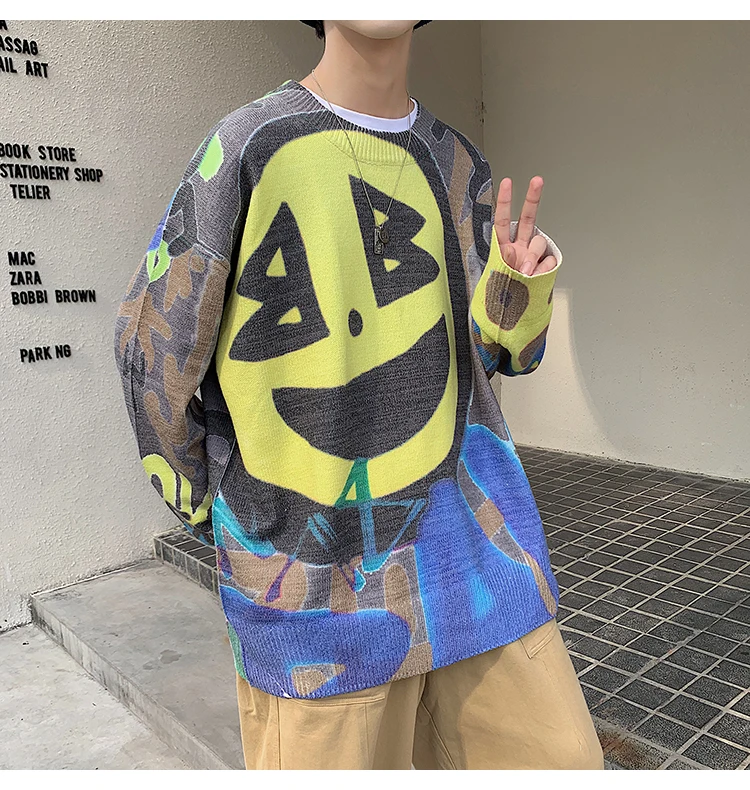 Пуловер мужской вязаный, оверсайз, модные свитера, осень, 2021